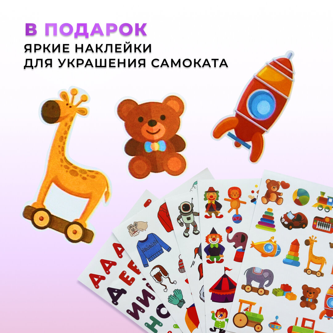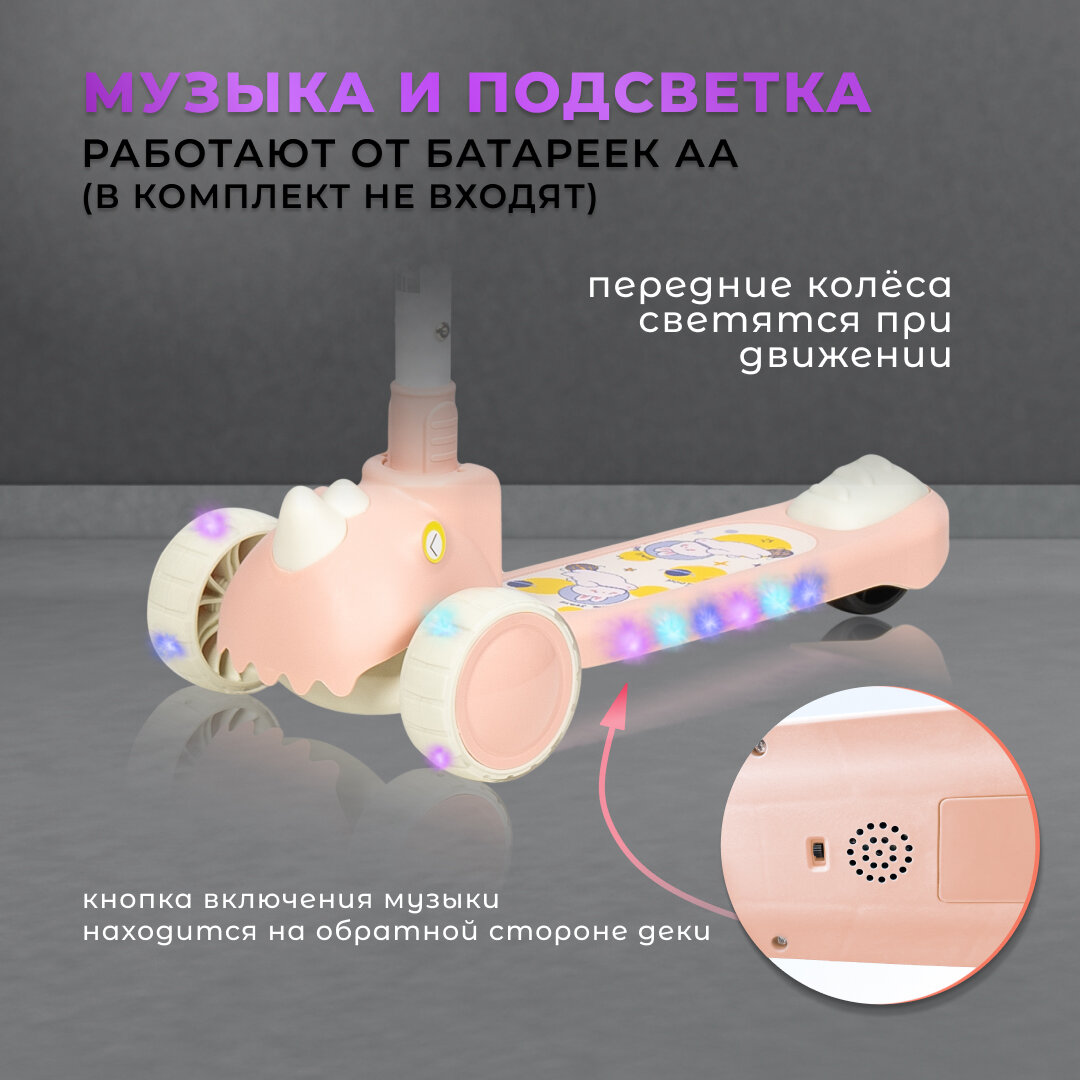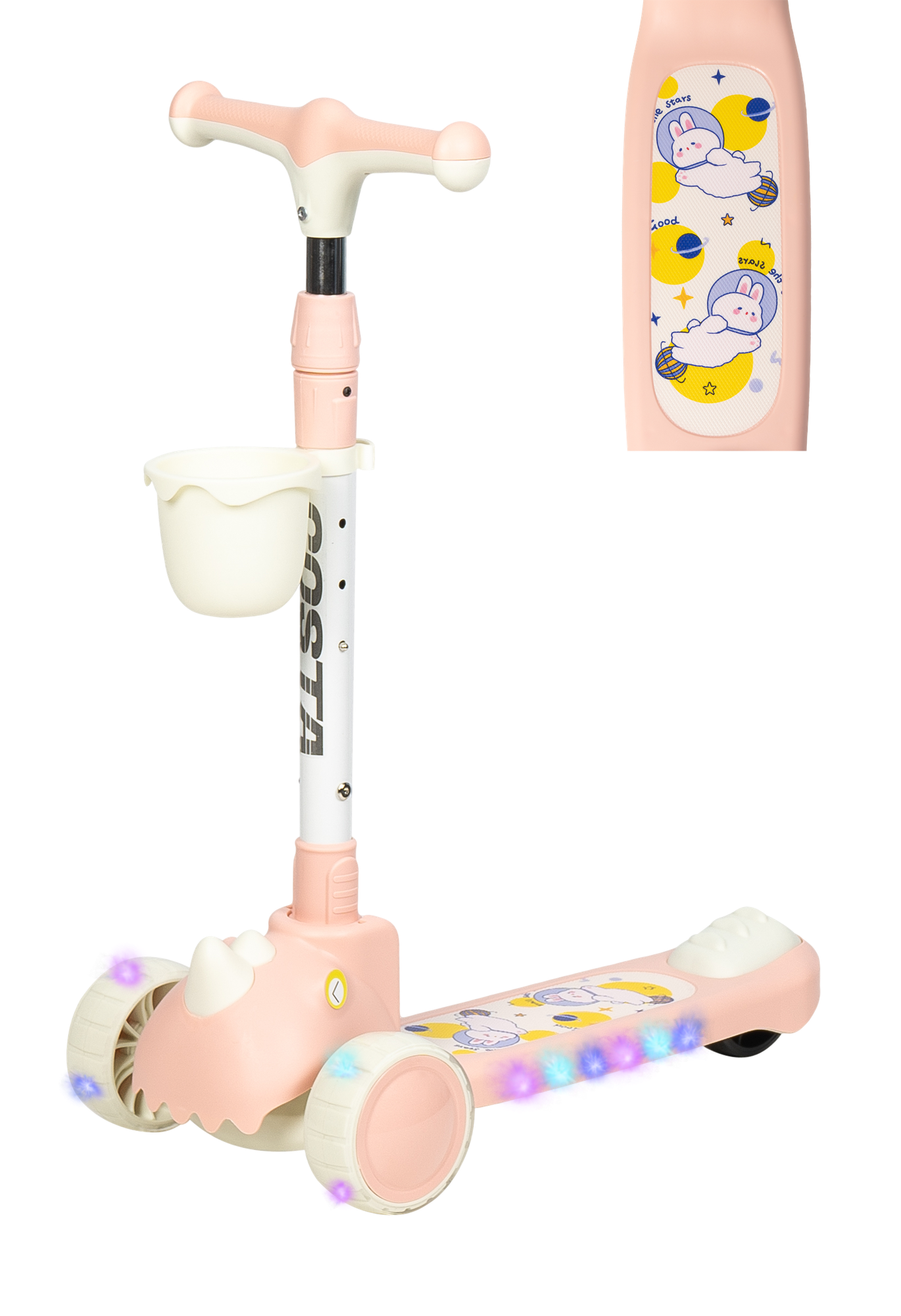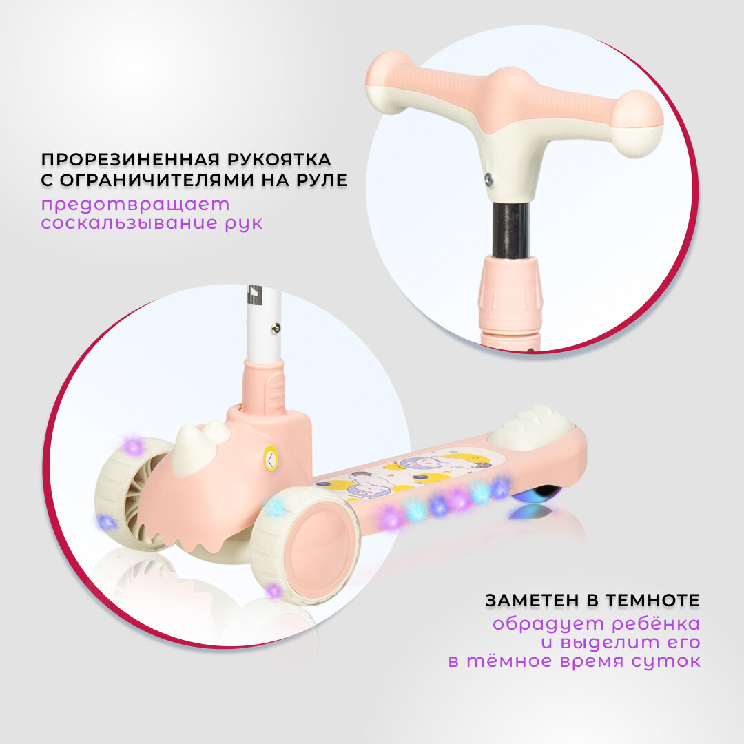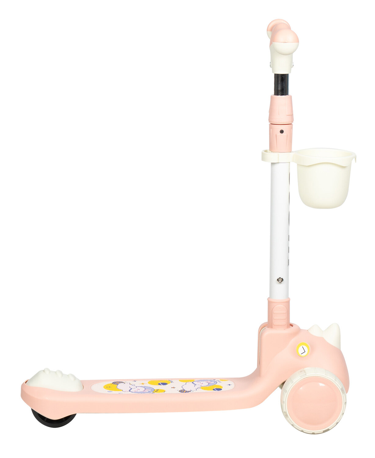 Самокат детский трехколесный COMIRON Yeenot "Зверята", регулируемая складная ручка, светящиеся колеса 110 и 75 мм, нагрузка до 40 кг, розовый / 1 шт.