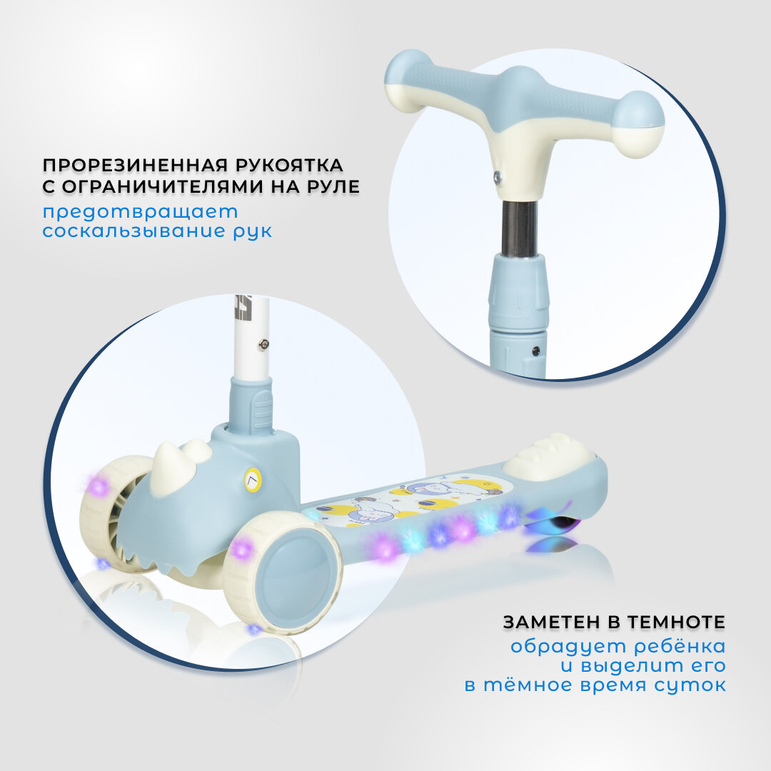| Конструктивные особенности | звуковые эффекты / регулировка высоты руля / светящиеся колеса / складной |