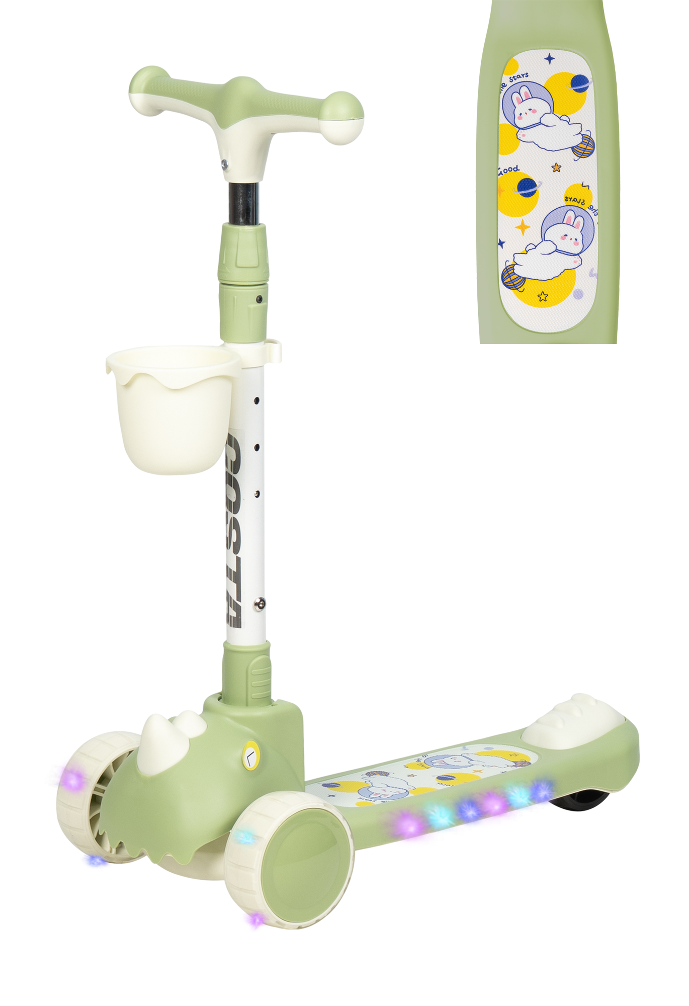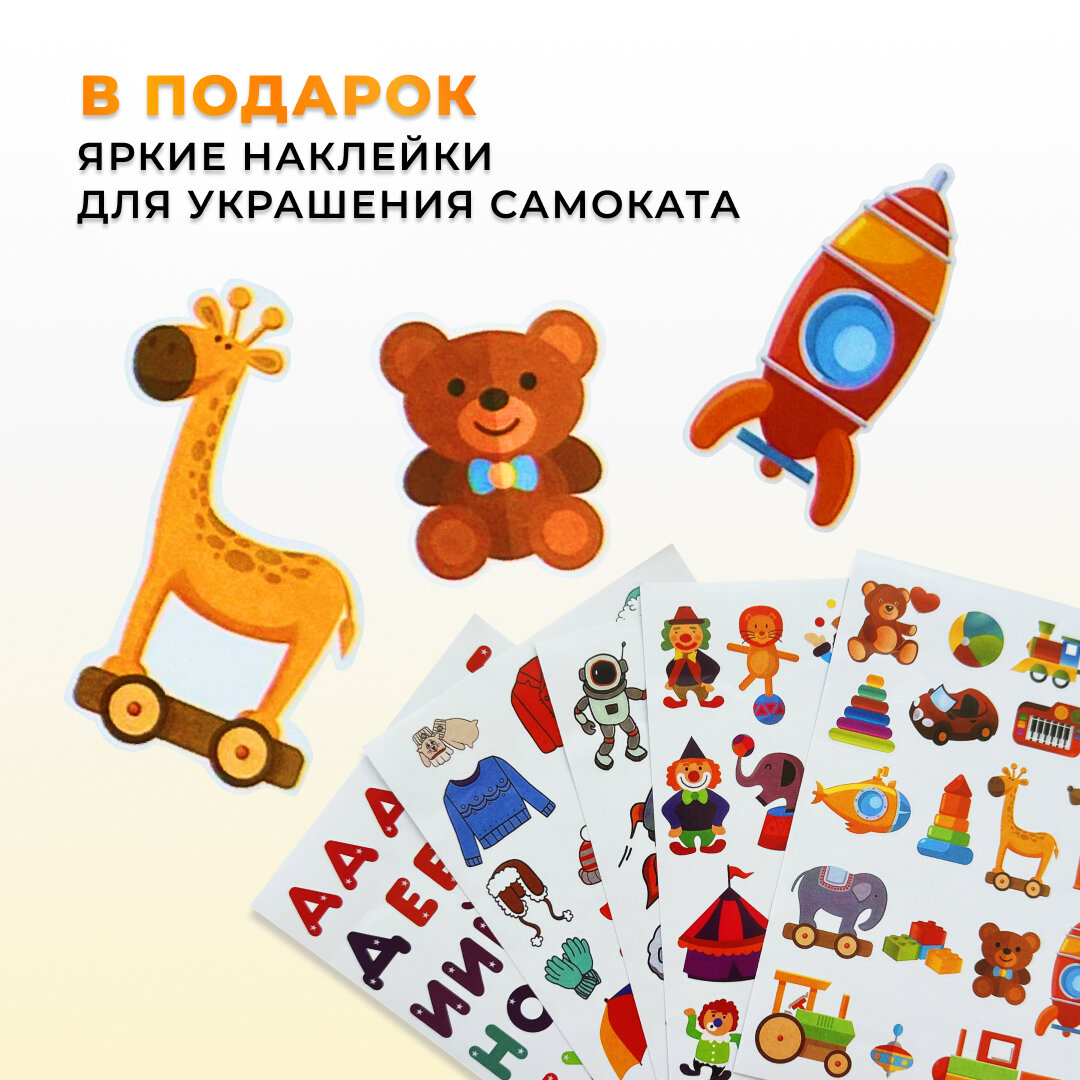 Самокат детский трехколесный COMIRON Yeenot "Зверята", регулируемая складная ручка, светящиеся колеса 110 и 75 мм, нагрузка до 40 кг, розовый / 1 шт.