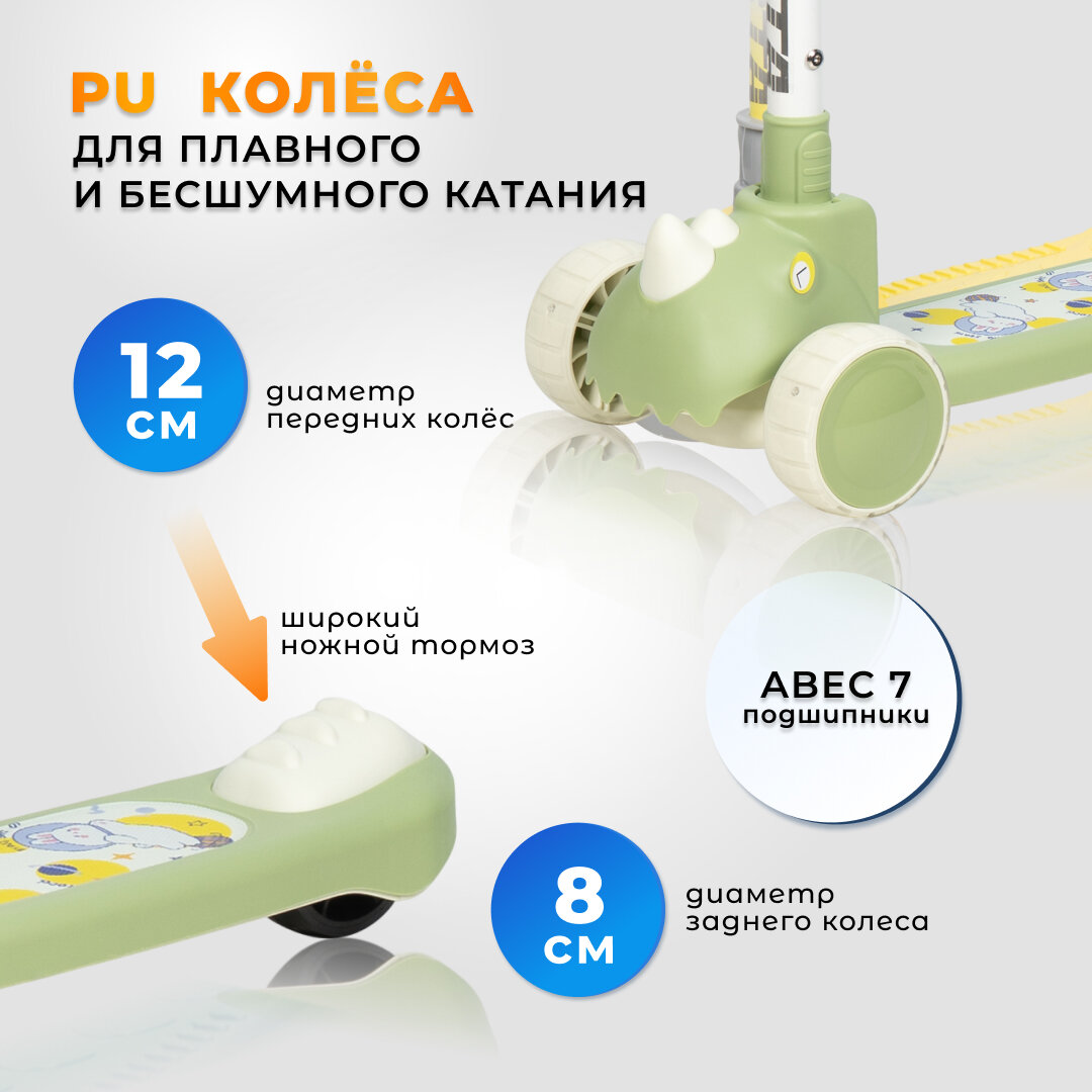 Самокат трехколесный детский Costa CST-09, зеленый интересное: