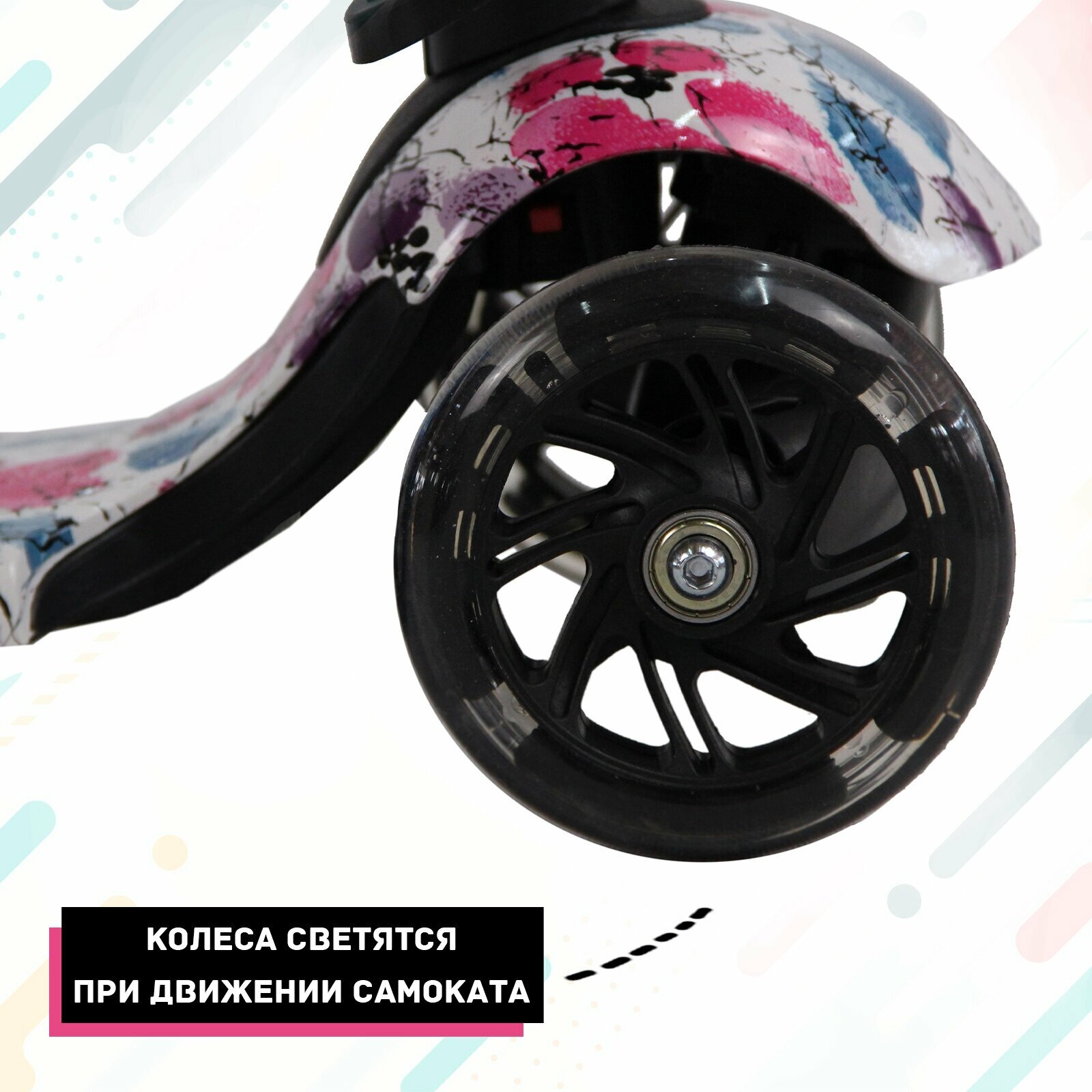 Купить Самокат детский трехколесный 3 в 1 до 5 лет со светящимися колесами, 110 мм, Розовые цветы