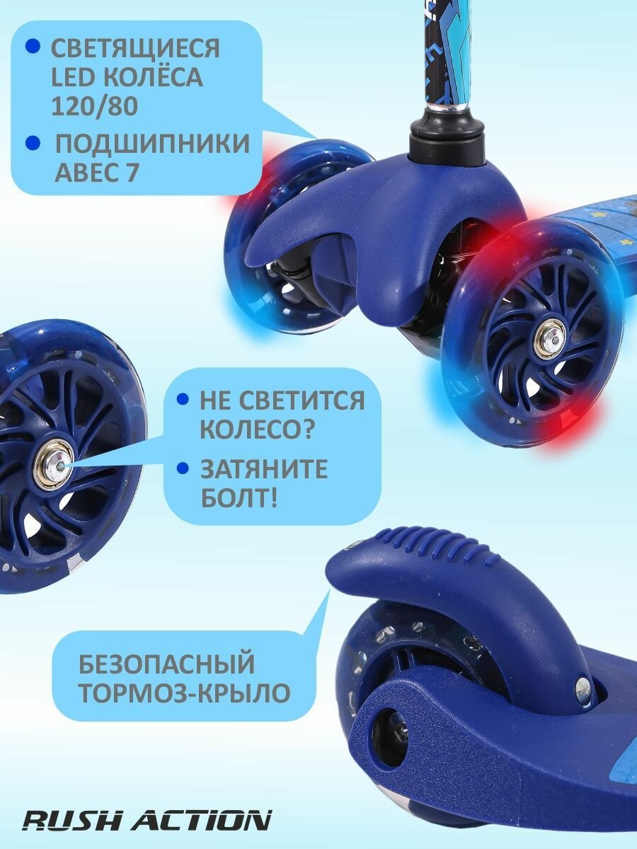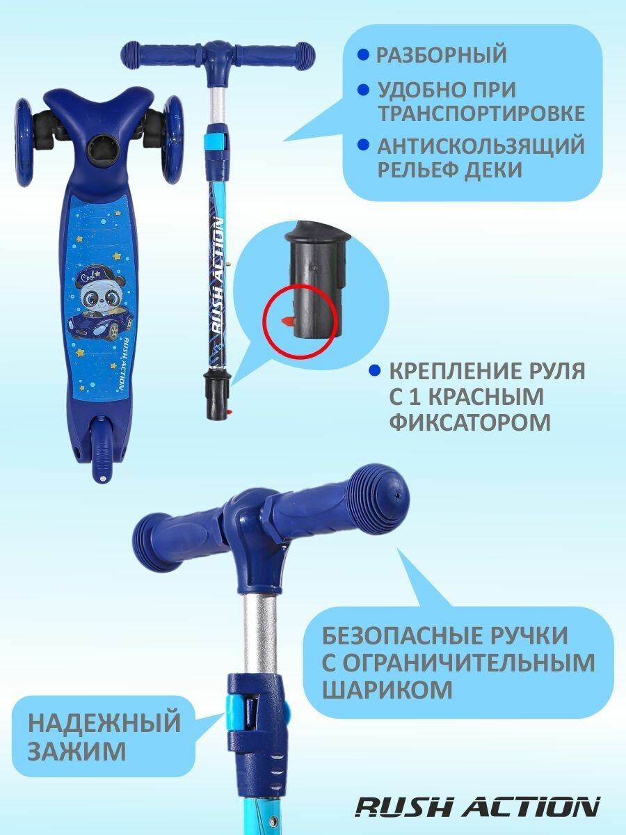 Самокат Rush Action 3-х колёсный S909G Panda, светящиеся колеса интересное: