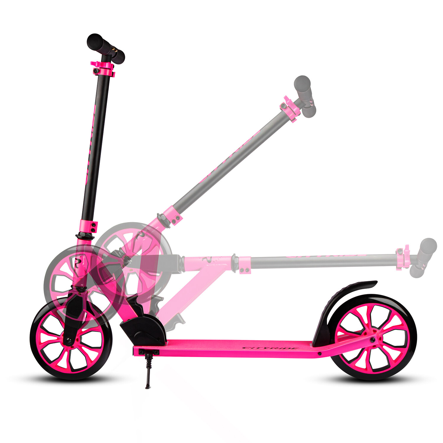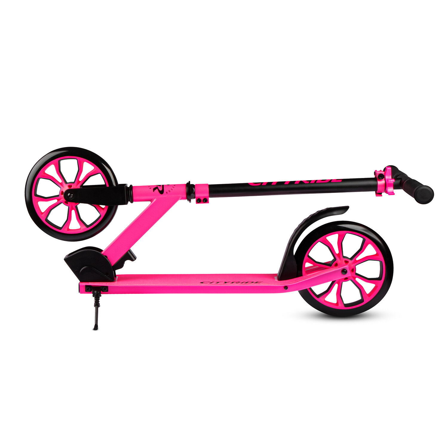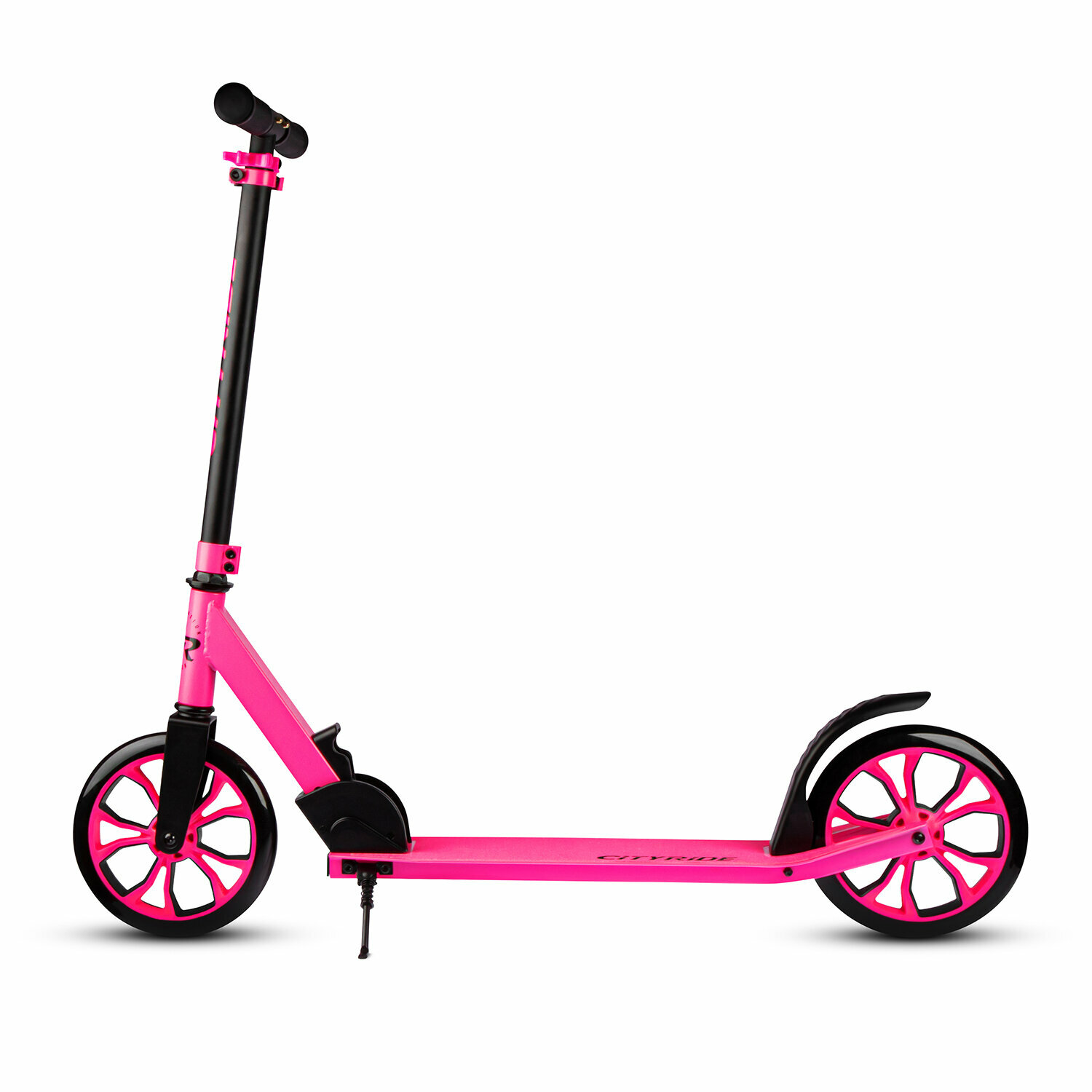 Самокат двухколесный CITY-RIDE, дека: алюминий анодированный, t-bar сталь, колеса PU 200/200, подножка, цвет розовый