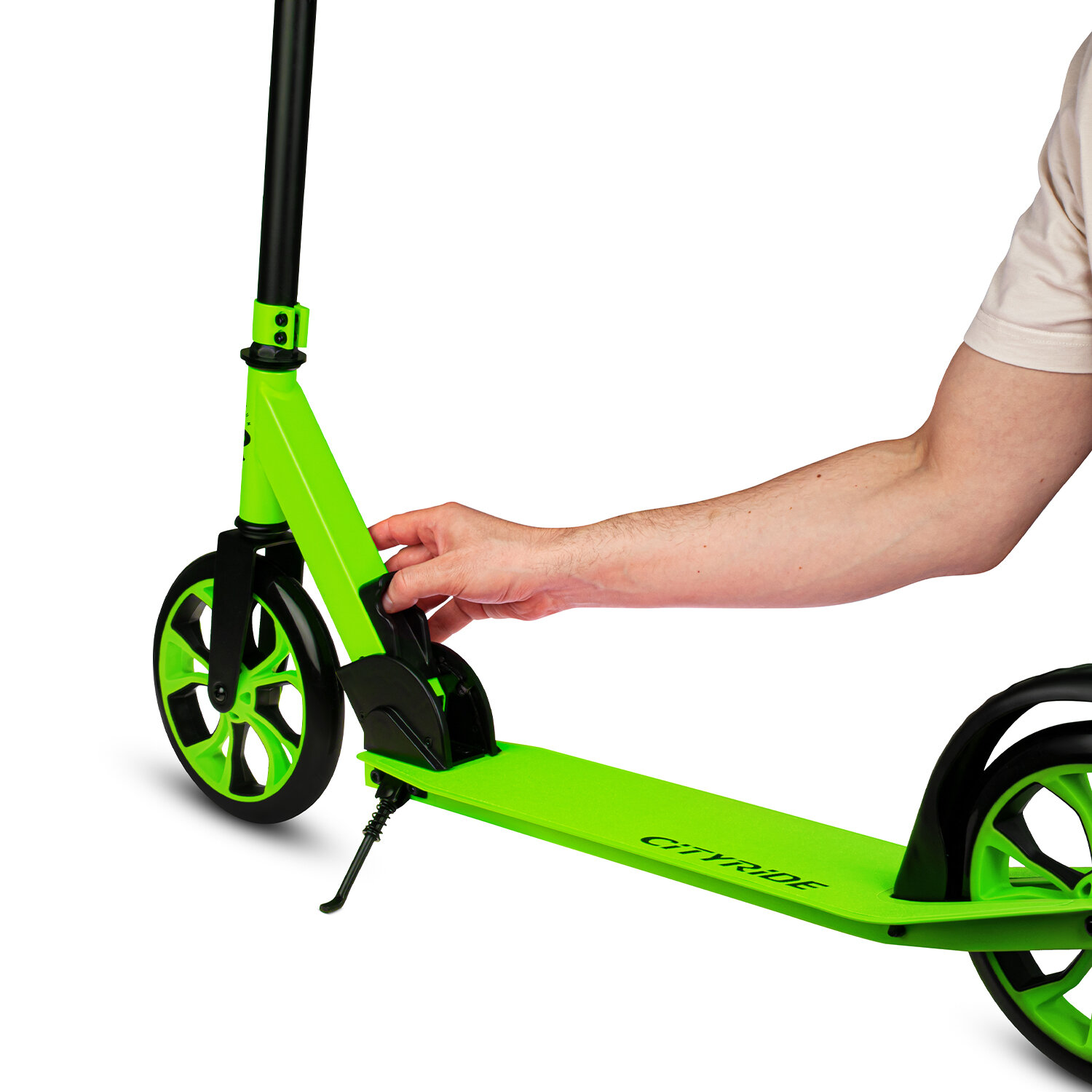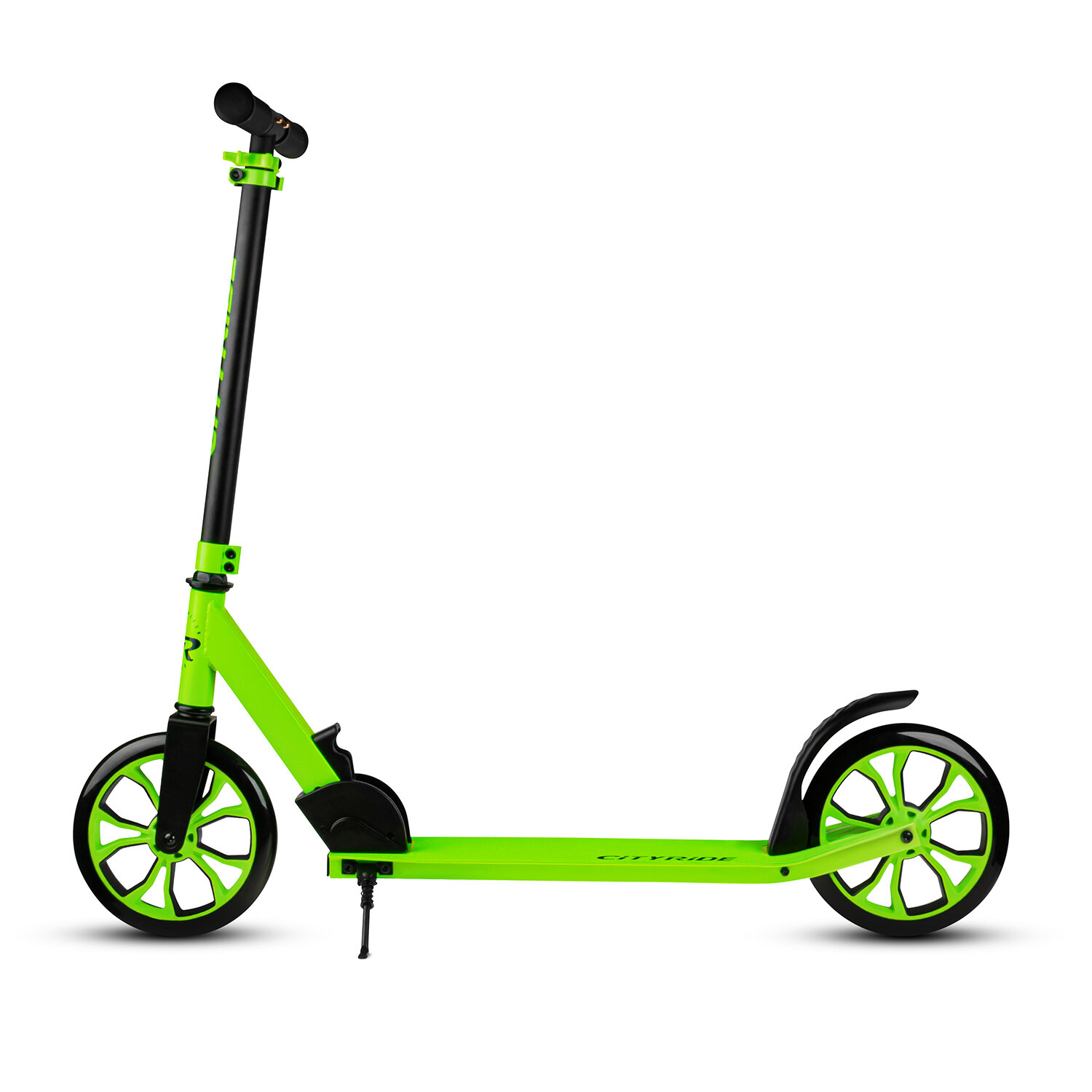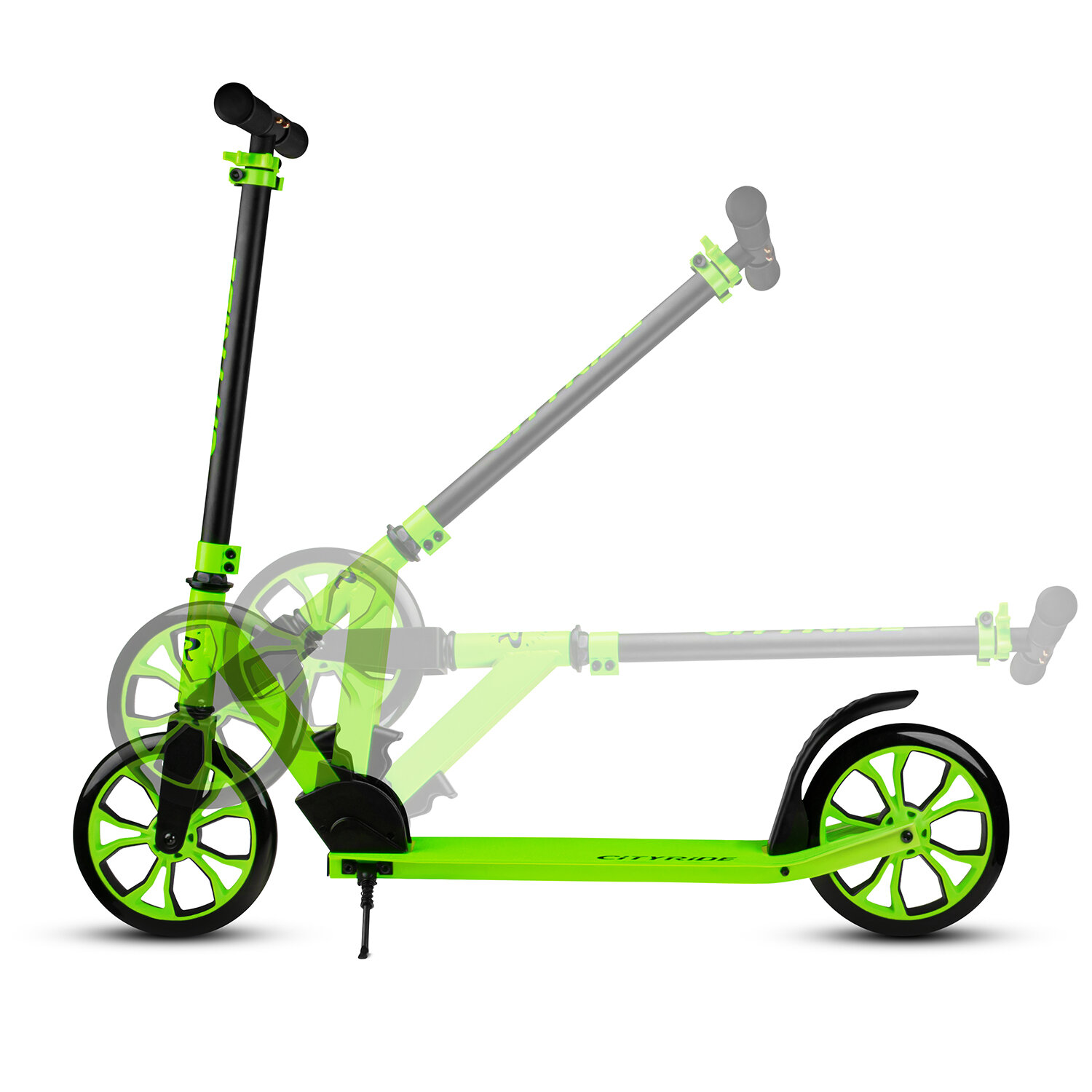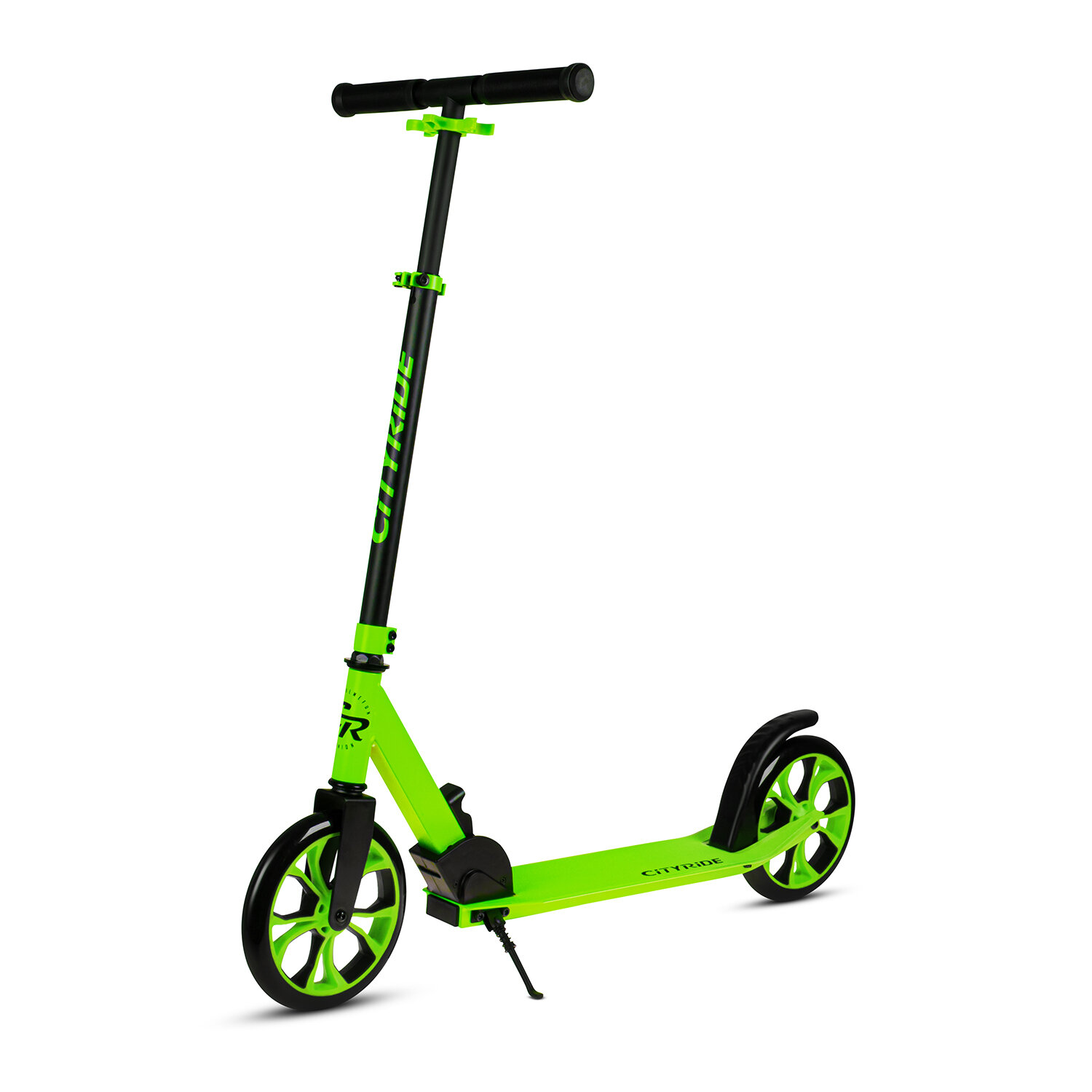 Самокат двухколесный CITYRIDE, складной, для детей/подростков, колеса PU 200/200, подножка, CR-S2-01GN