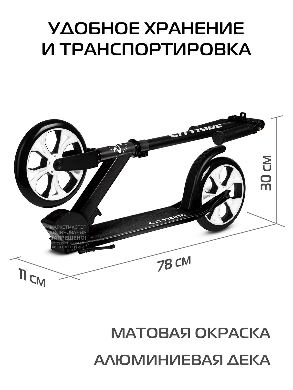 Самокат городской City-Ride CR-S2-01PCA C 200MM PU; алюминий/сталь порошковое покрытие. Дека 53*11СМ