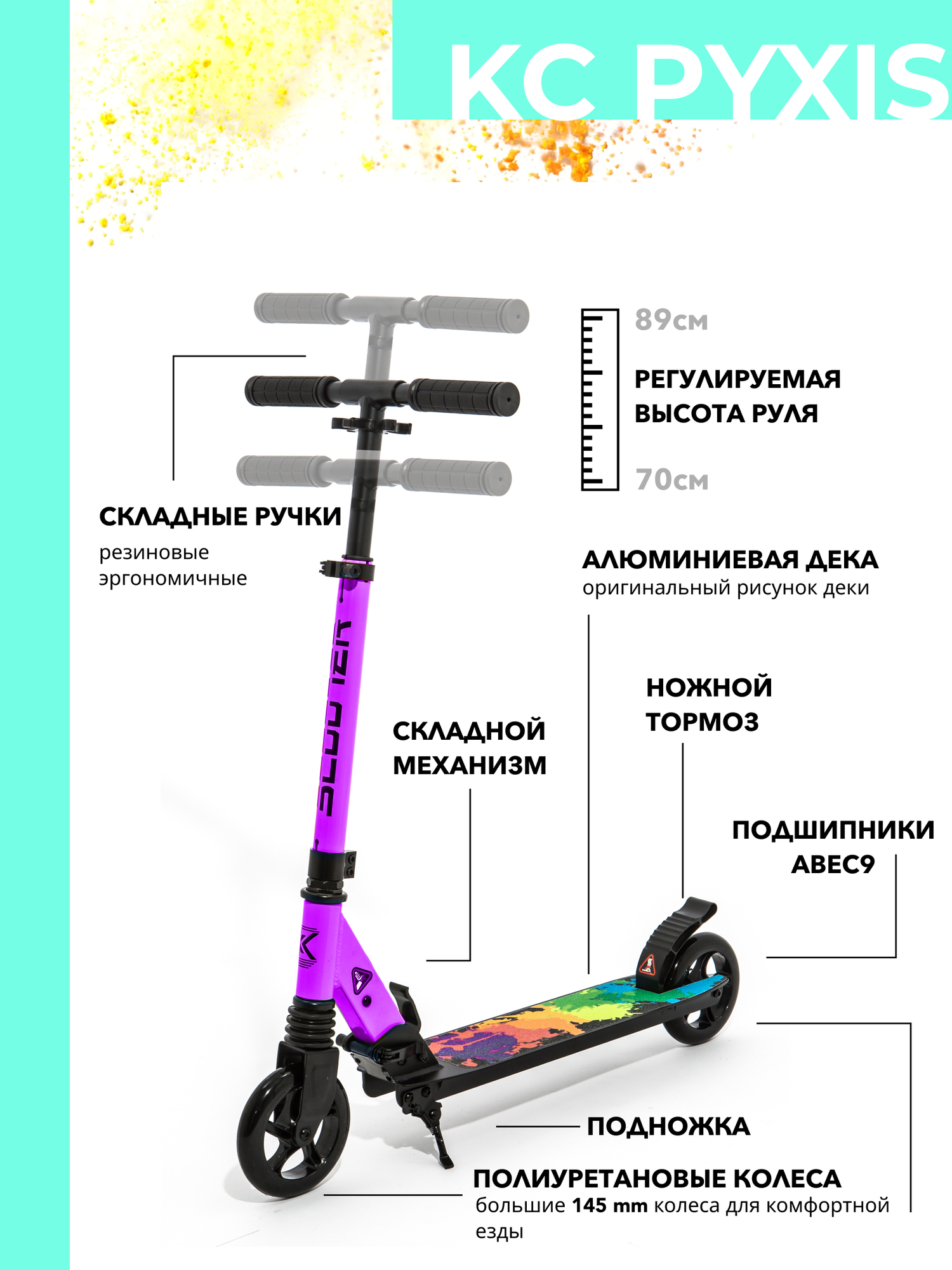 Самокат городской двухколесный подростковый взрослый KC PYXIS (Колеса 145 мм рама ALU) фиолетовый интересное:
