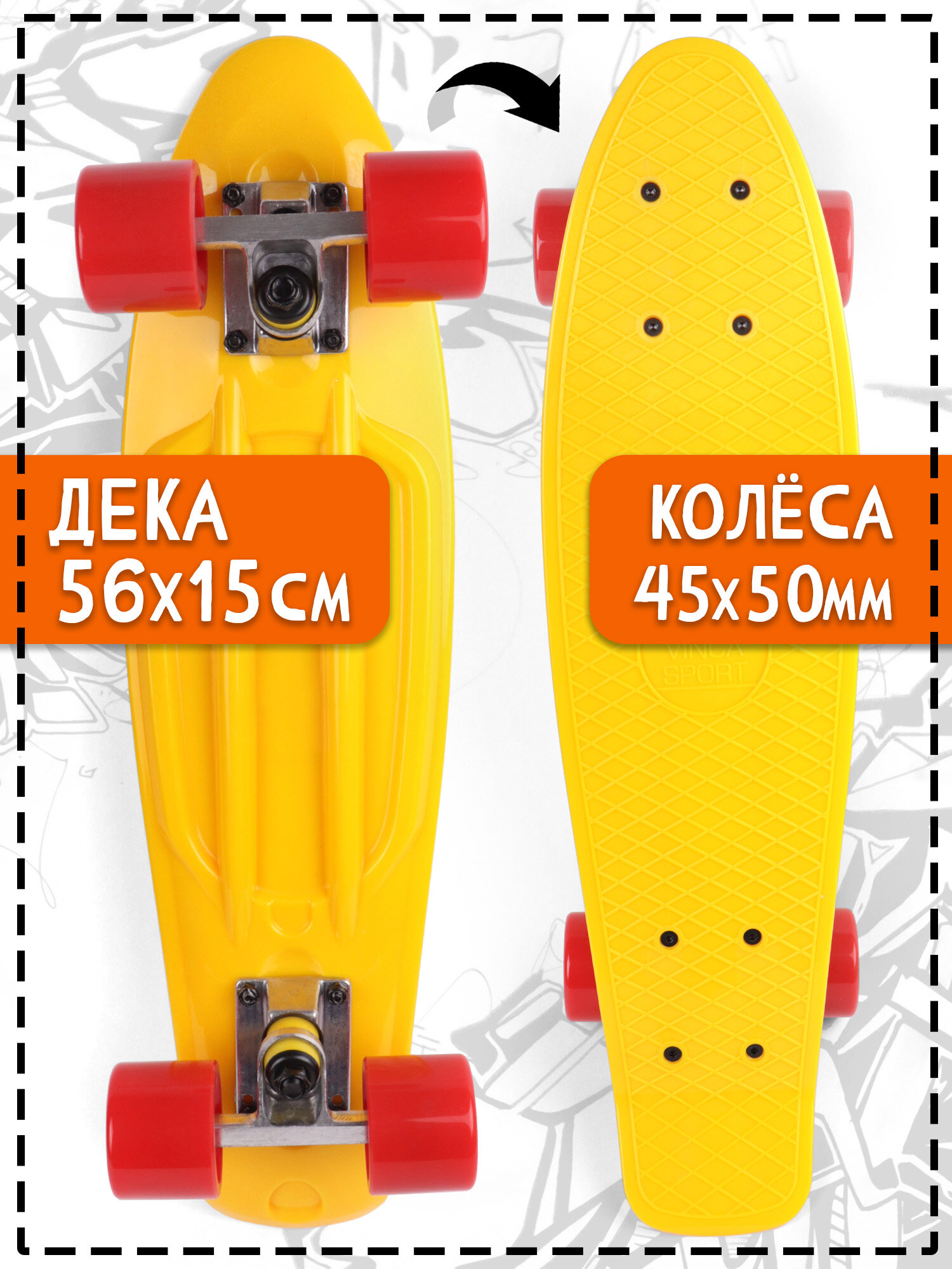 Купить DS 01 yellow/red. Круизер Vinca Sport , скейтборд, лонгборд, пенниборд, дека 56*14,5 см желт., колеса PU красные