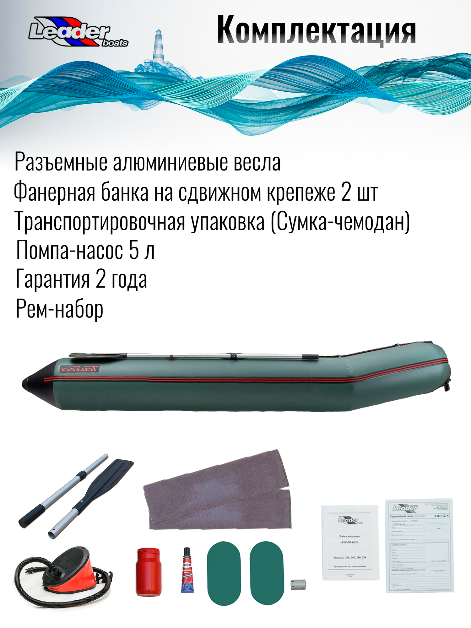 | Состав набора | Разъёмные алюминиевые весла; фанерная банка на сдвижном крепеже; ножная-помпа; ремкомплект; лодка |