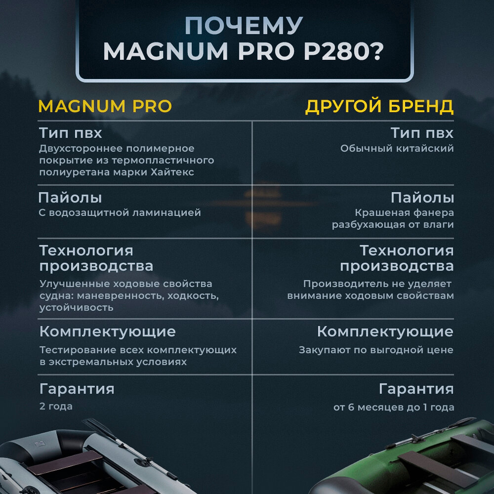 Лодка ПВХ под мотор надувная двухместная гребная для рыбалки Magnum PRO Р280 грузоподьемностью 220 кг. интересное:
