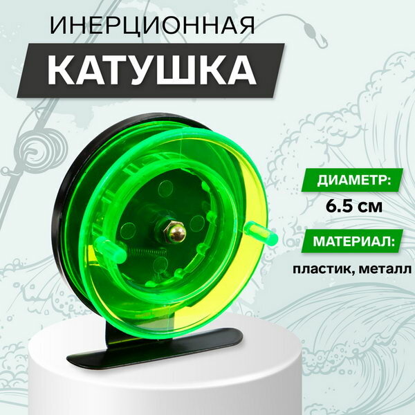 Катушка инерционная, диаметр 6.5 см, металл/пластик, цвет черный, зелёный, 1 шт