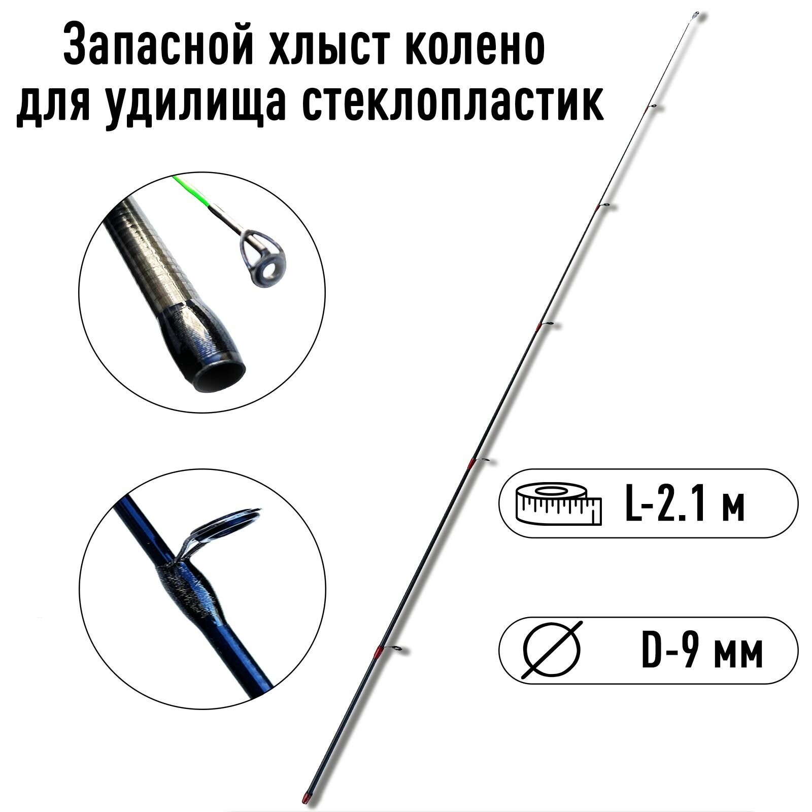 Запасной хлыст колено вершинка для удилища спиннинга стекловолокно 2.1м диам 9мм тест универсальный