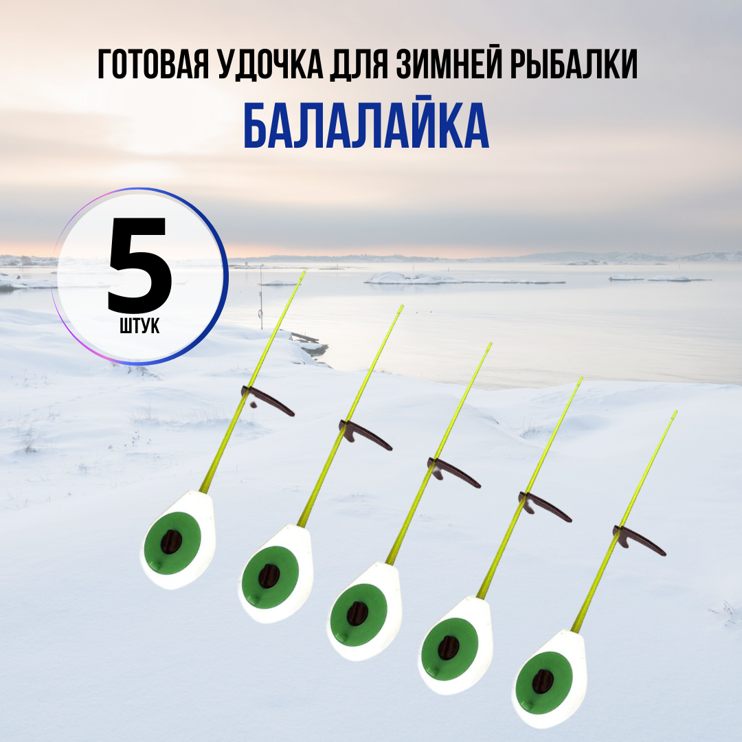 Купить Удочка для зимней рыбалки балалайка в наборе 5 штук зеленый