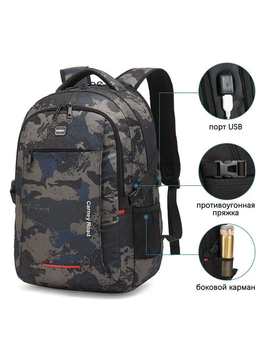 Рюкзак мужской USB спортивный Carney Road с USB-выходом, антивор и боковыми карманами