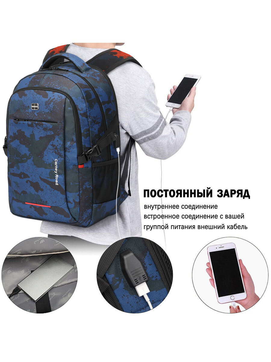 Рюкзак мужской USB спортивный Carney Road с USB-выходом, антивор и боковыми карманами