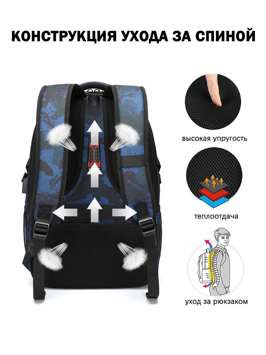 | Конструктивные особенности | USB-выход / антивор / боковые карманы / вентилируемые лямки / вентиляция спины / внутренний карман / перегородка в основном отделении / ремешок крепления ноутбука |