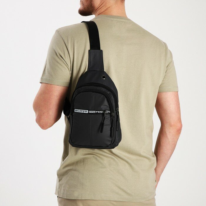 Сумка слинг мужская из текстиля, отверстие для наушников, цвет серый интересное: