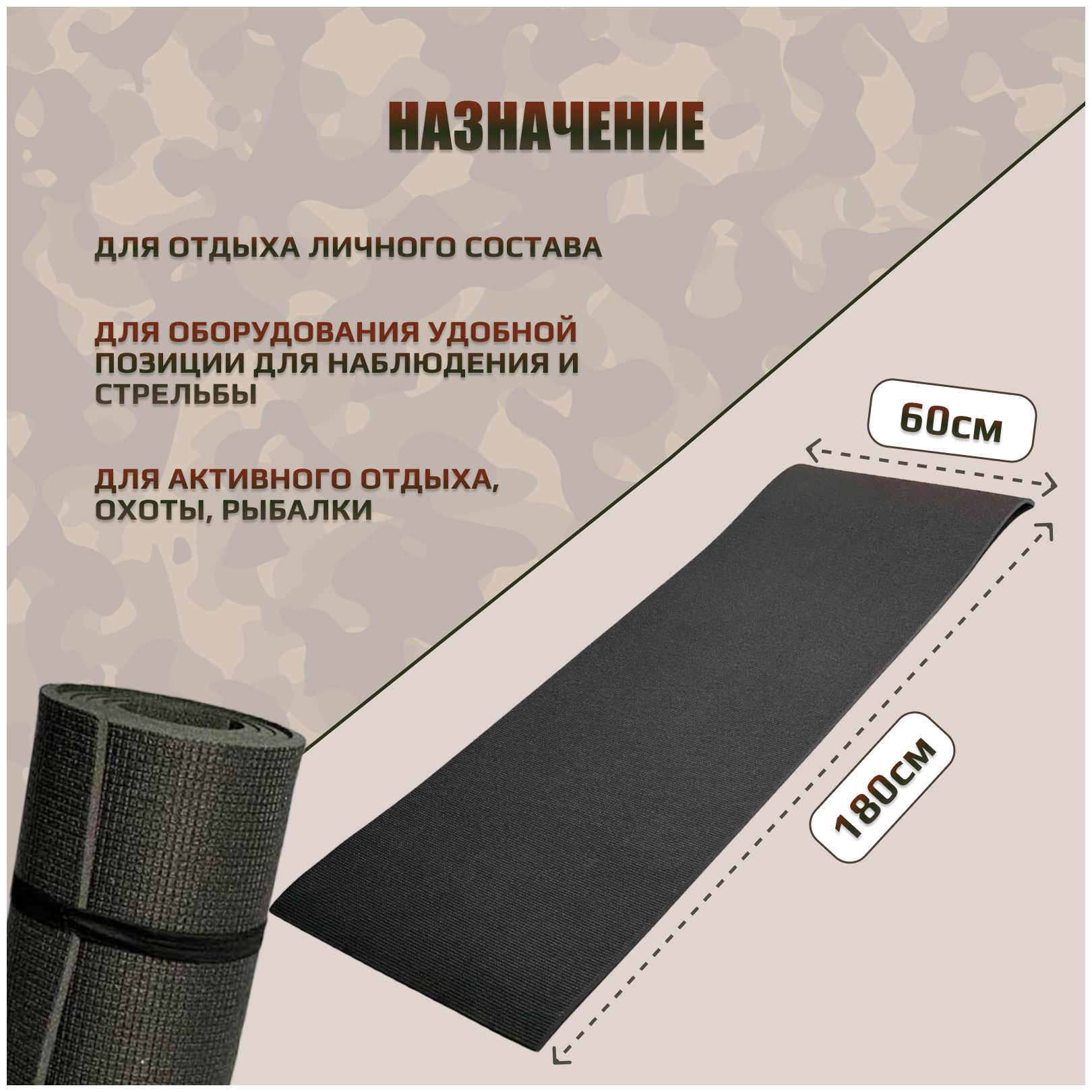 Тактический рулонный коврик (антрацит) Размер - 180 х 60 см, толщина - 10 мм интересное: