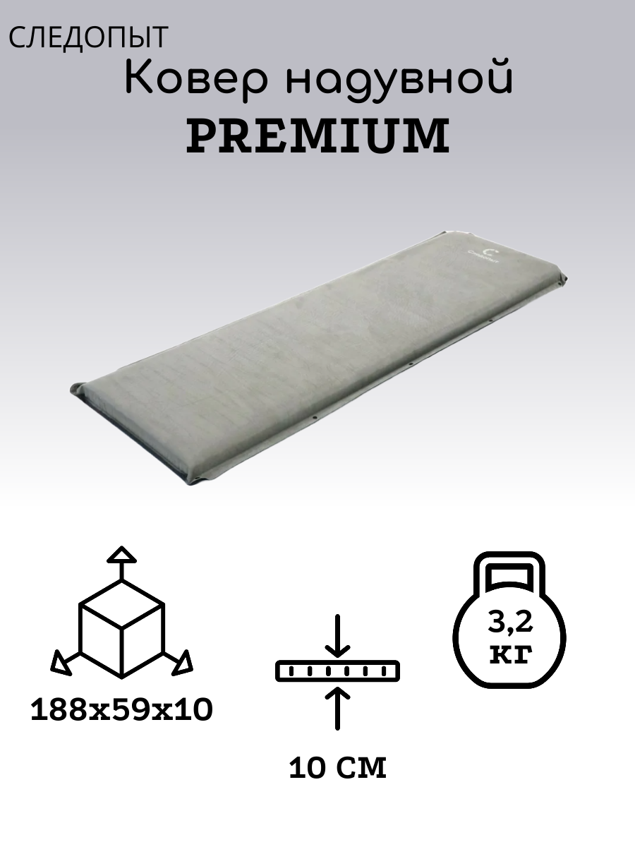 Коврик самонадувающийся "следопыт" 188x59x10 cм, премиум, цв. серый/6/ (PF-KS-02)