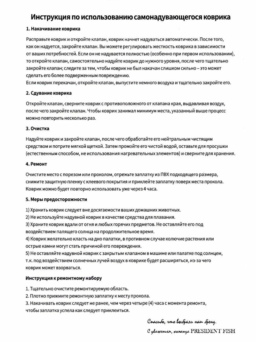Коврик самонадувной "PRESIDENT FISH" 8895202 PF-05DP синий интересное: