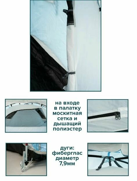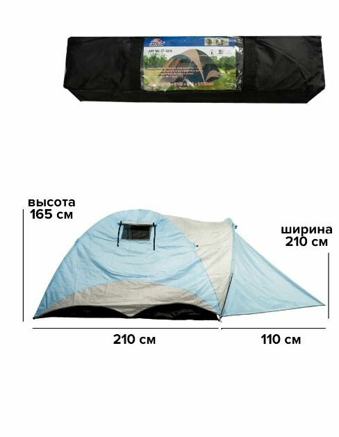 Палатка туристическая 3-х местная 2316, с тамбуром (110см.) 210х210х165см интересное: