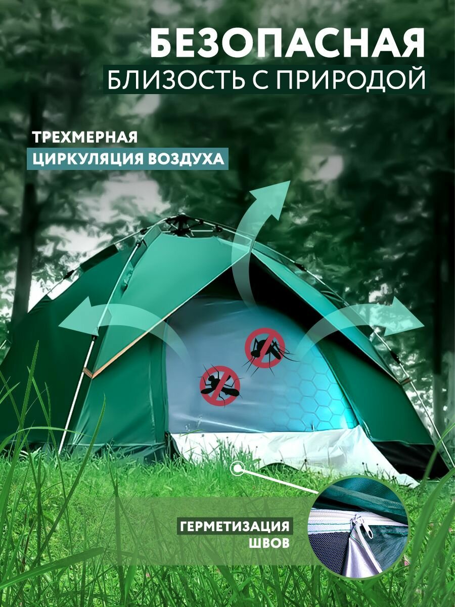 Палатка туристическая 3 местная Classmark для туризма и отдыха на природе, для похода и кемпинга, с москитной сеткой, водонепроницаемая, темно-зеленый