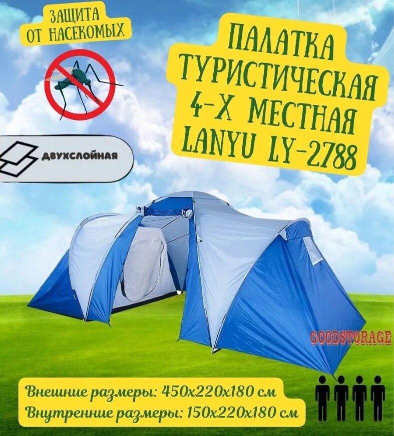 Палатка туристическая 4-х местная с тамбуром 450х220х180, LY 2788 интересное:
