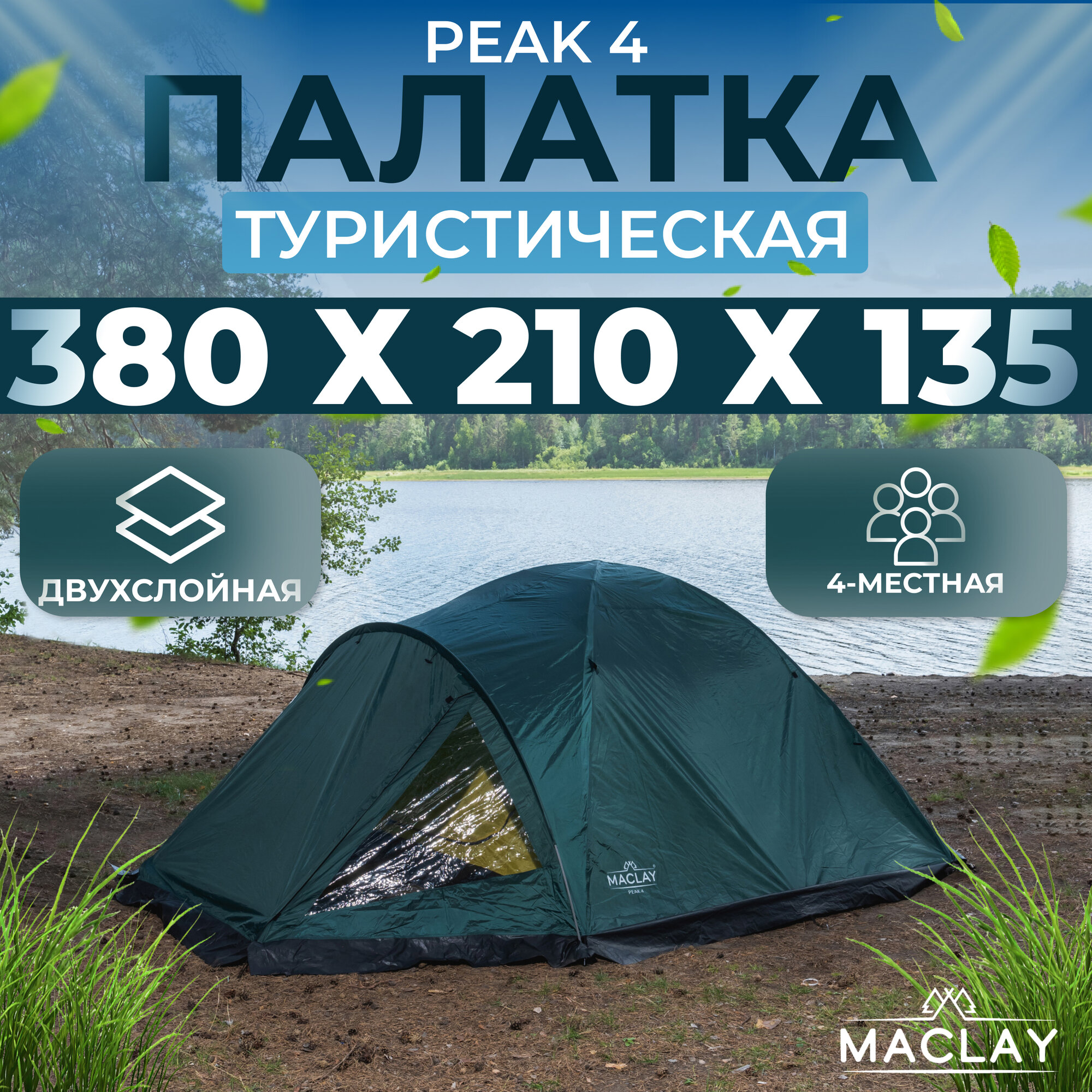Maclay Палатка туристическая, трекинговая maclay PEAK 4, 4-местная, с тамбуром