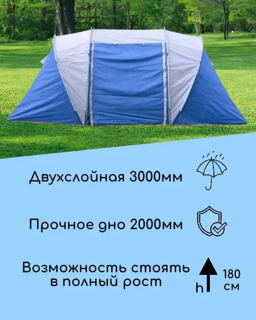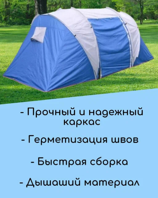 | Особенности | 4 комнаты / вентиляционные отверстия / навес / окна / проклеенные швы / противомоскитная сетка / тамбур / усиленные углы |