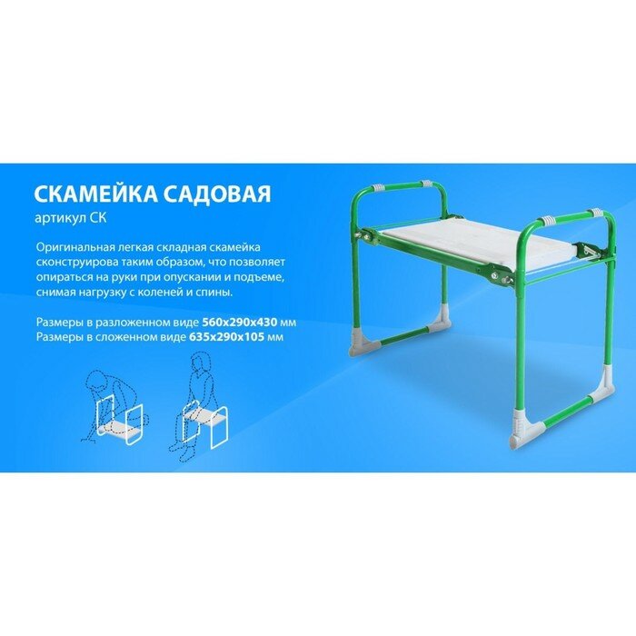 Nika Скамейка-перевёртыш для дачи Nika складная 56х30х42.5 см, зелёная, до 100кг, для грядок интересное: