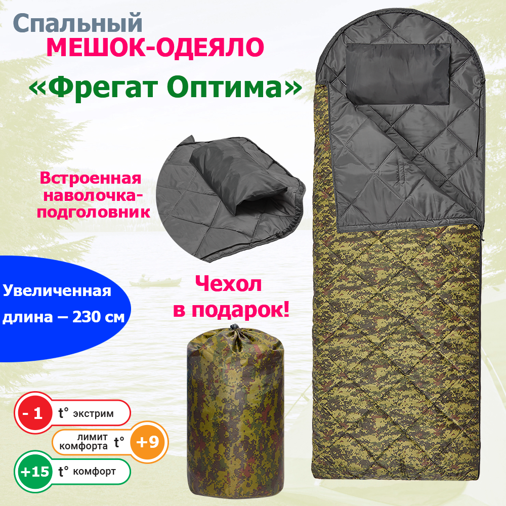 Спальный мешок Фрегат (150) с ультразвуковой стежкой, ширина 75 см, камуфляж, до -1°C, 230 см, ширина 75 интересное: