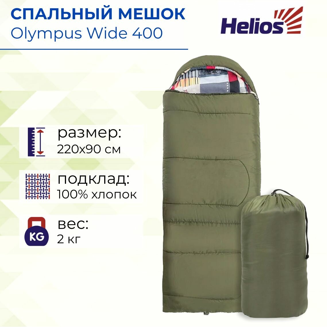 Спальный мешок "HELIOS" Olympus Wide 400 220х90, холофайбер, зеленый/город интересное: