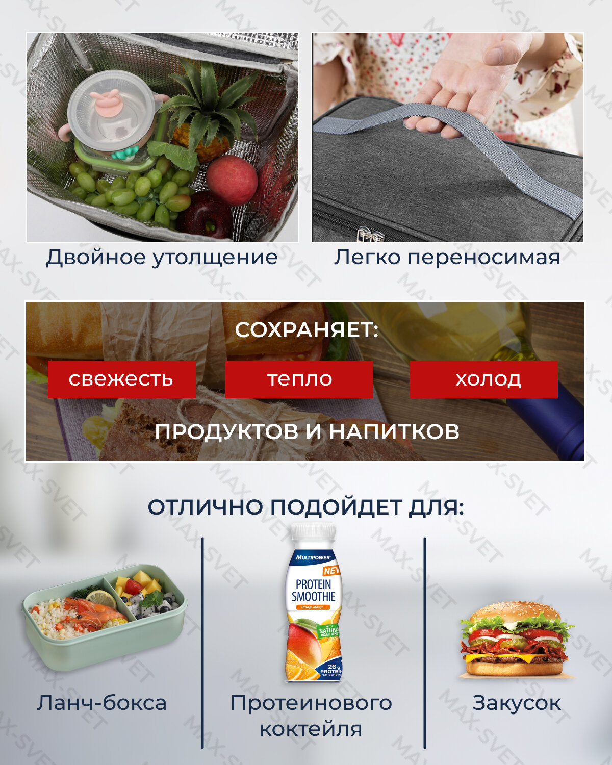 Ниже Вы можете прочитать отзывы на Сумка холодильник S-MAX объемом 8 литров со съемным плечевым ремнем, водонепроницаемыми швами для сохранения продуктов в тепле или холоде, серая, ознакомится с подробными характеристиками, посмотреть интересные обзоры и фотографии на Сумка холодильник S-MAX объемом 8 литров со съемным плечевым ремнем, водонепроницаемыми швами для сохранения продуктов в тепле или холоде, серая.