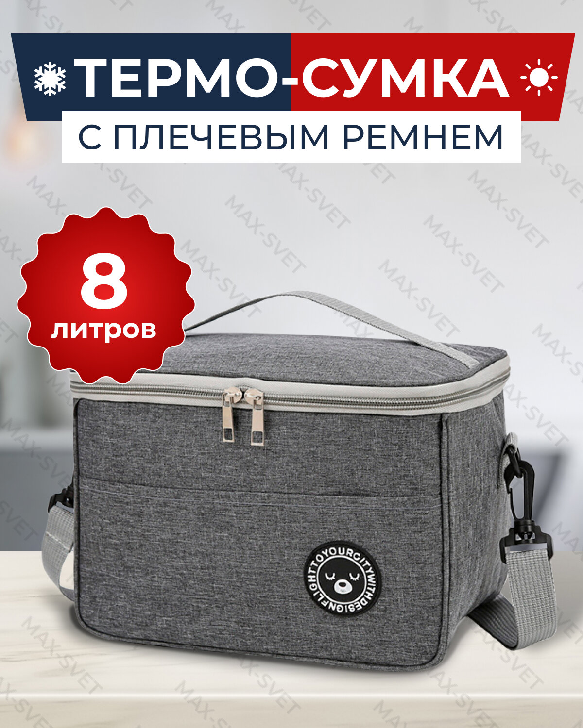 Купить Сумка холодильник S-MAX объемом 8 литров со съемным плечевым ремнем, водонепроницаемыми швами для сохранения продуктов в тепле или холоде, серая