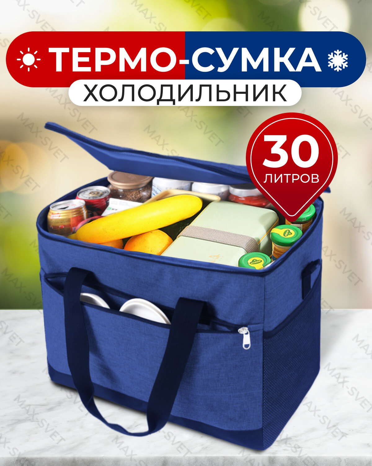 Сумка-холодильник (термосумка) 30 л (31х40х26 см) цвет синий/черный (MAXSVETSHOP)