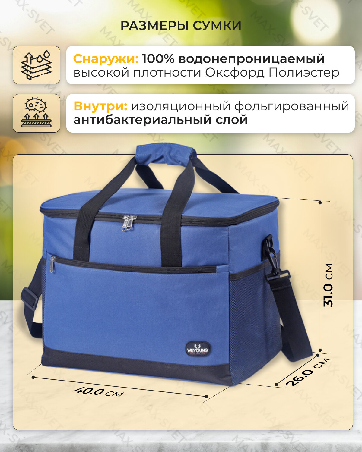 Купить Сумка холодильник S-MAX объемом 30 литров со съемным плечевым ремнем, водонепроницаемыми швами для сохранения продуктов в тепле или холоде, синяя