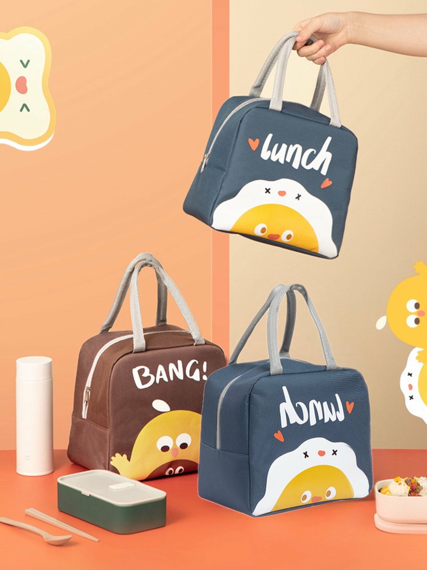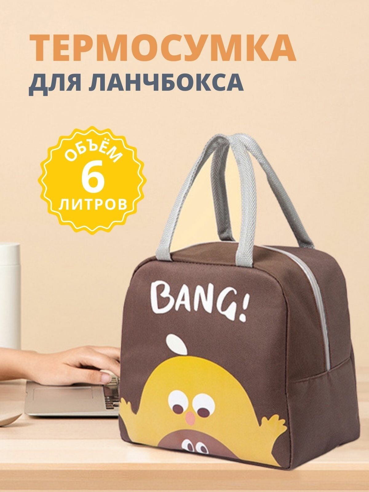 Купить Термосумка для ланч-бокса Коричневый DORIZORI/портативная сумка-холодильник для путешествий, детский бутылочек и обедов, 23х22х13см.