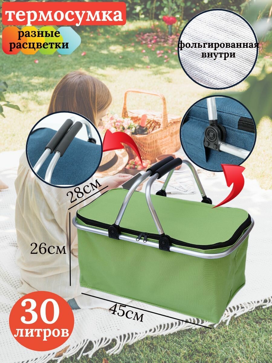 Термосумка, сумка дорожная, cумка-холодильник большой вместимости, объем 20,5 литров, размер 36*18,5*31