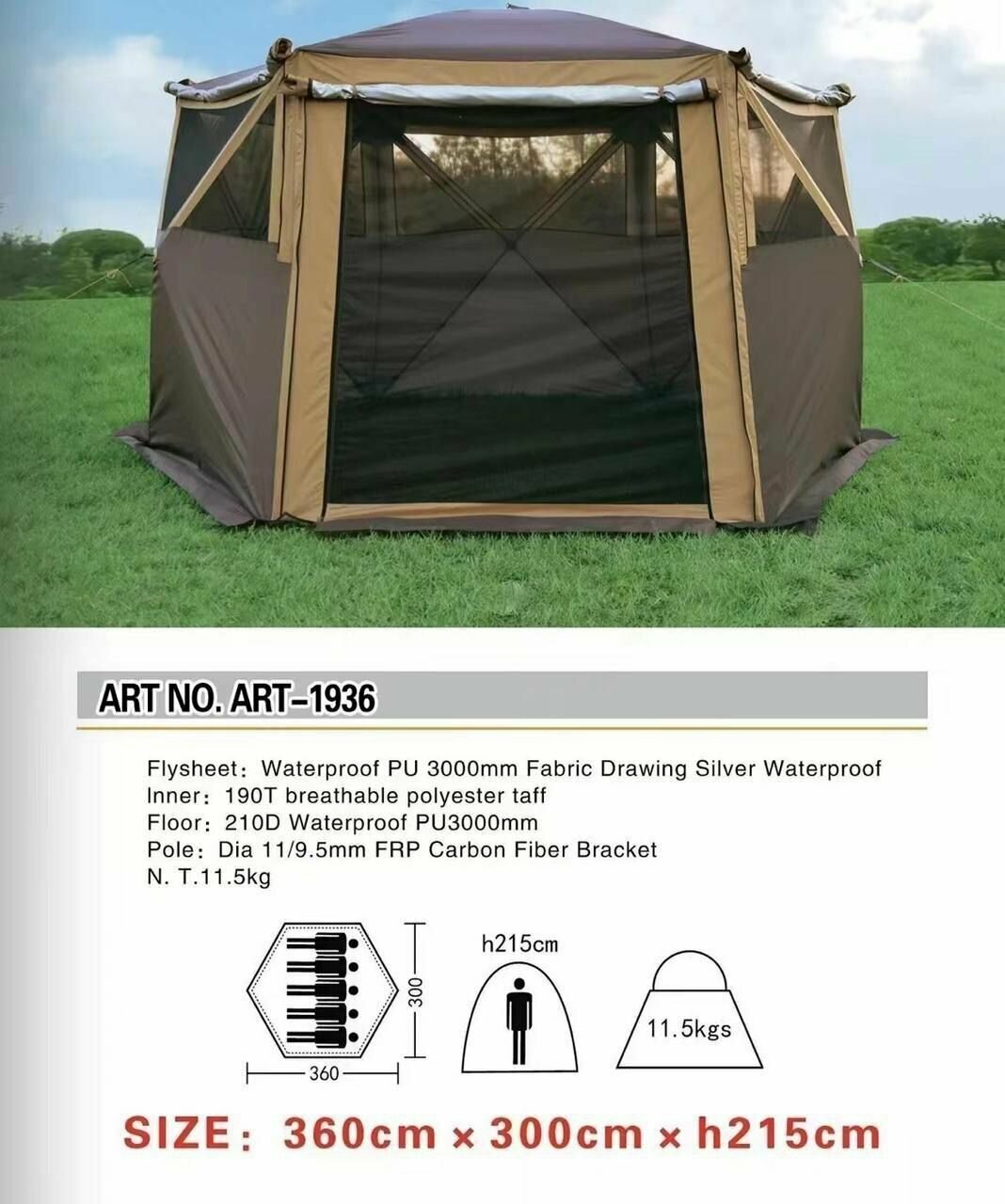 Шестиугольный 5-ти местный шатер MIMIR2905(один вход)