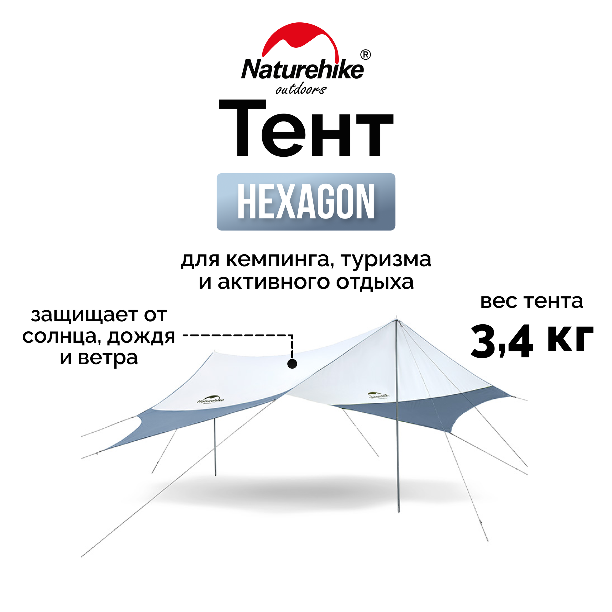 Тент Naturehike Hexagon NH16T013-S, 150D, 520*460 см для кемпинга, серый с голубым (с двумя стойками), 6927595777794 интересное: