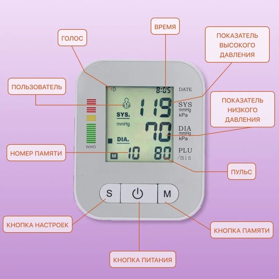 | Особенности | автоматическое отключение / безболезненная манжета / управление одной кнопкой / фиксация даты и времени |