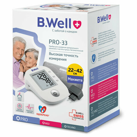 Тонометр B.WELL PRO-33ad, манжета 22-42 см, автоматический, на плечо, адаптер питания, PRO-33 ad интересное: