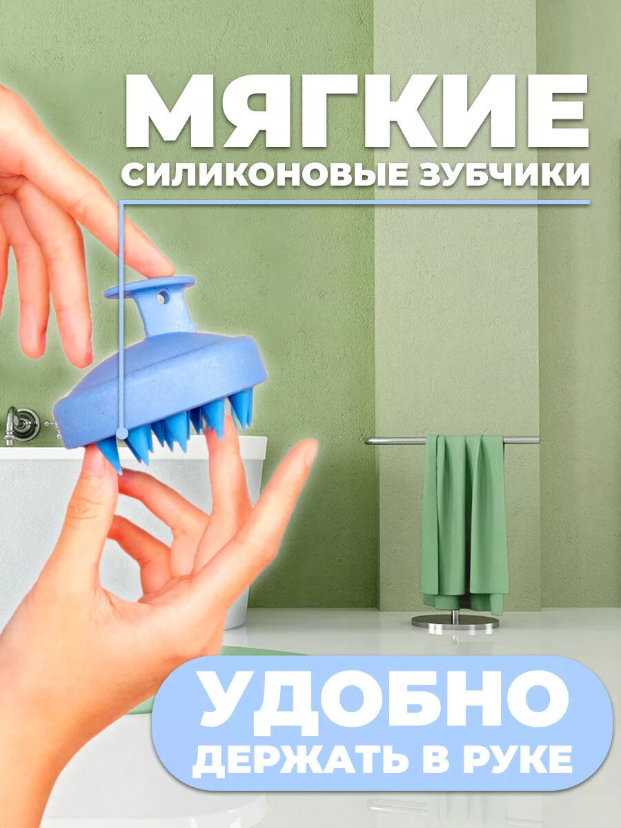 Массажная щетка для мытья волос и кожи головы силиконовая