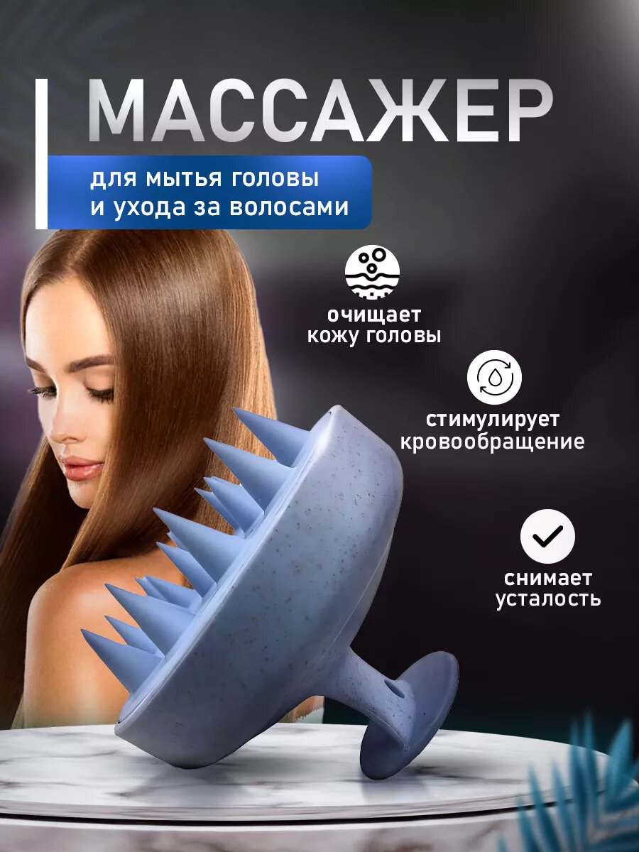 Массажная щетка для мытья волос и кожи головы силиконовая голубая