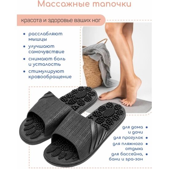 СохранитьТапочки с массажным эффектом AMARO HOME Relax Step Открытый нос (Чёрный) 38-39, black интересное: