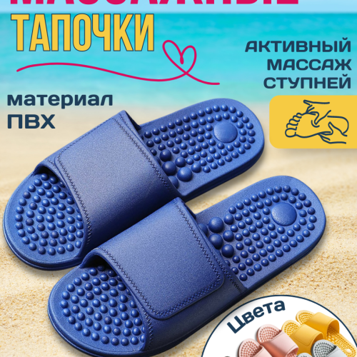 Акупунктурные массажные тапочки шиацу Антистресс, синие, р.44-45