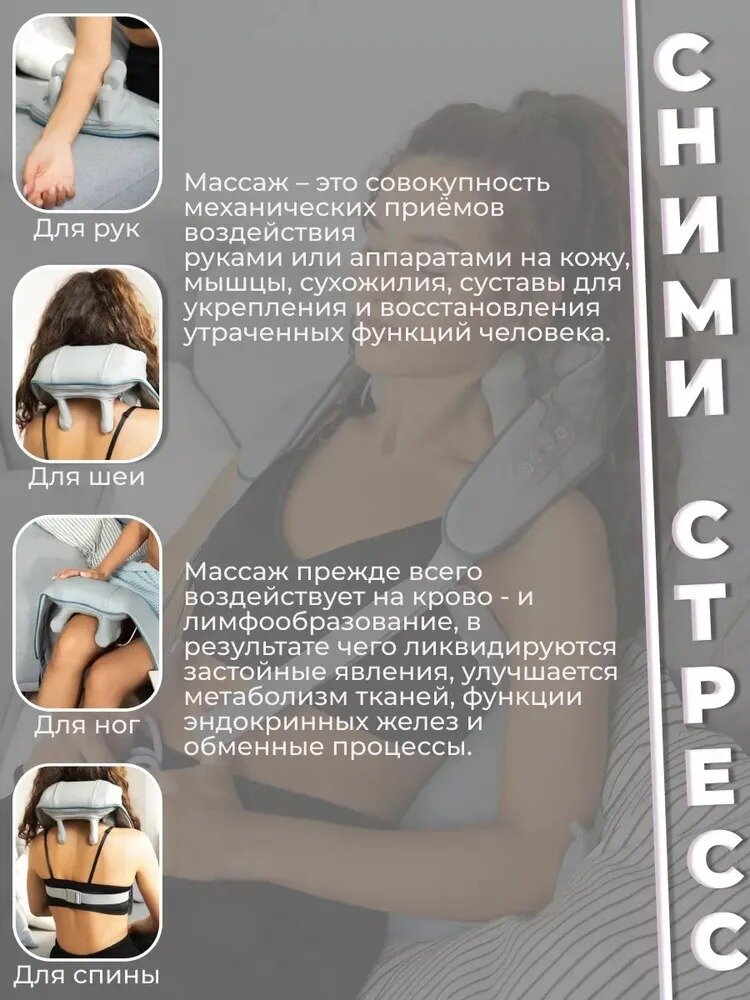 | Зона массажа | ноги / поясница / спина / шея |