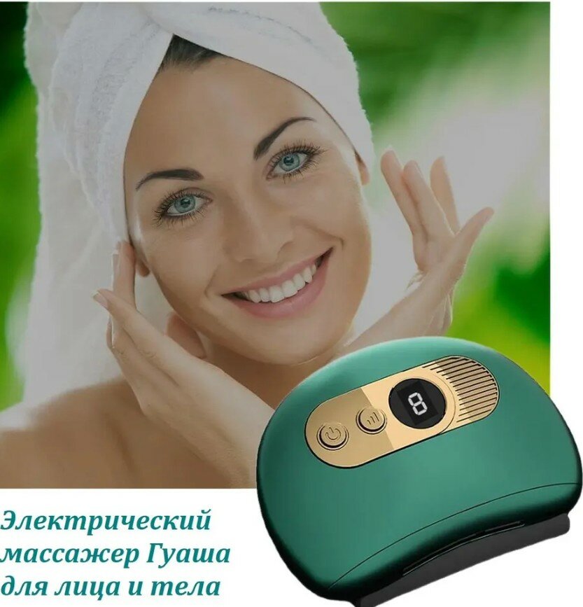 Скребковый массажер Гуаша электрический для лица и тела с подогревом и вибрацией зеленый интересное: