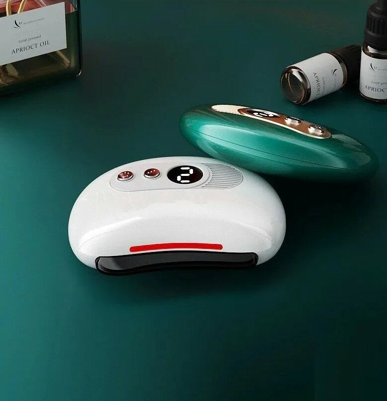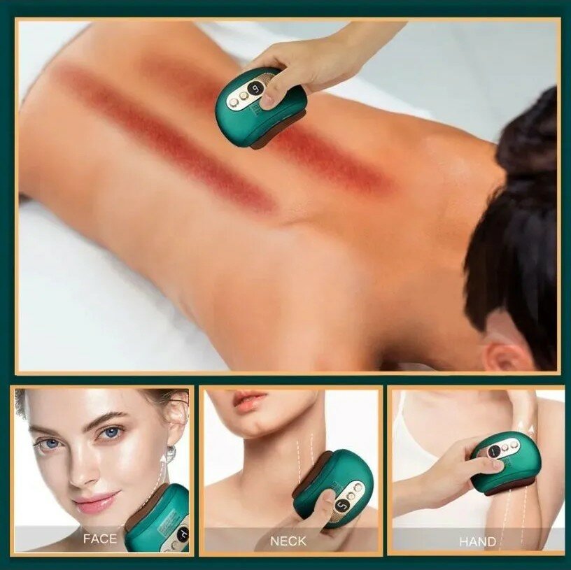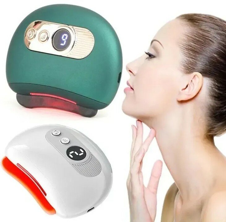 Скребковый массажер Гуаша электрический для лица и тела с подогревом и вибрацией зеленый
