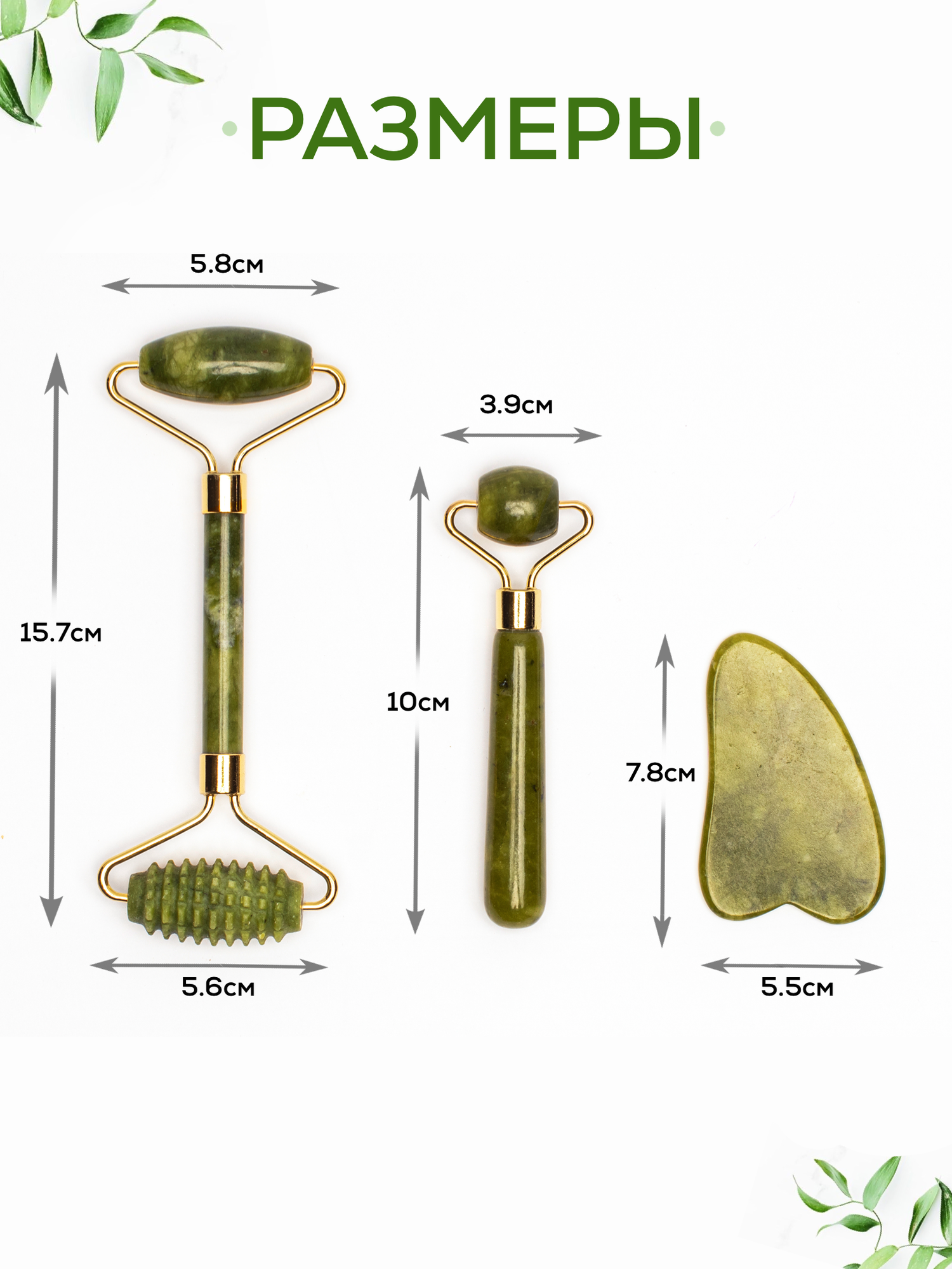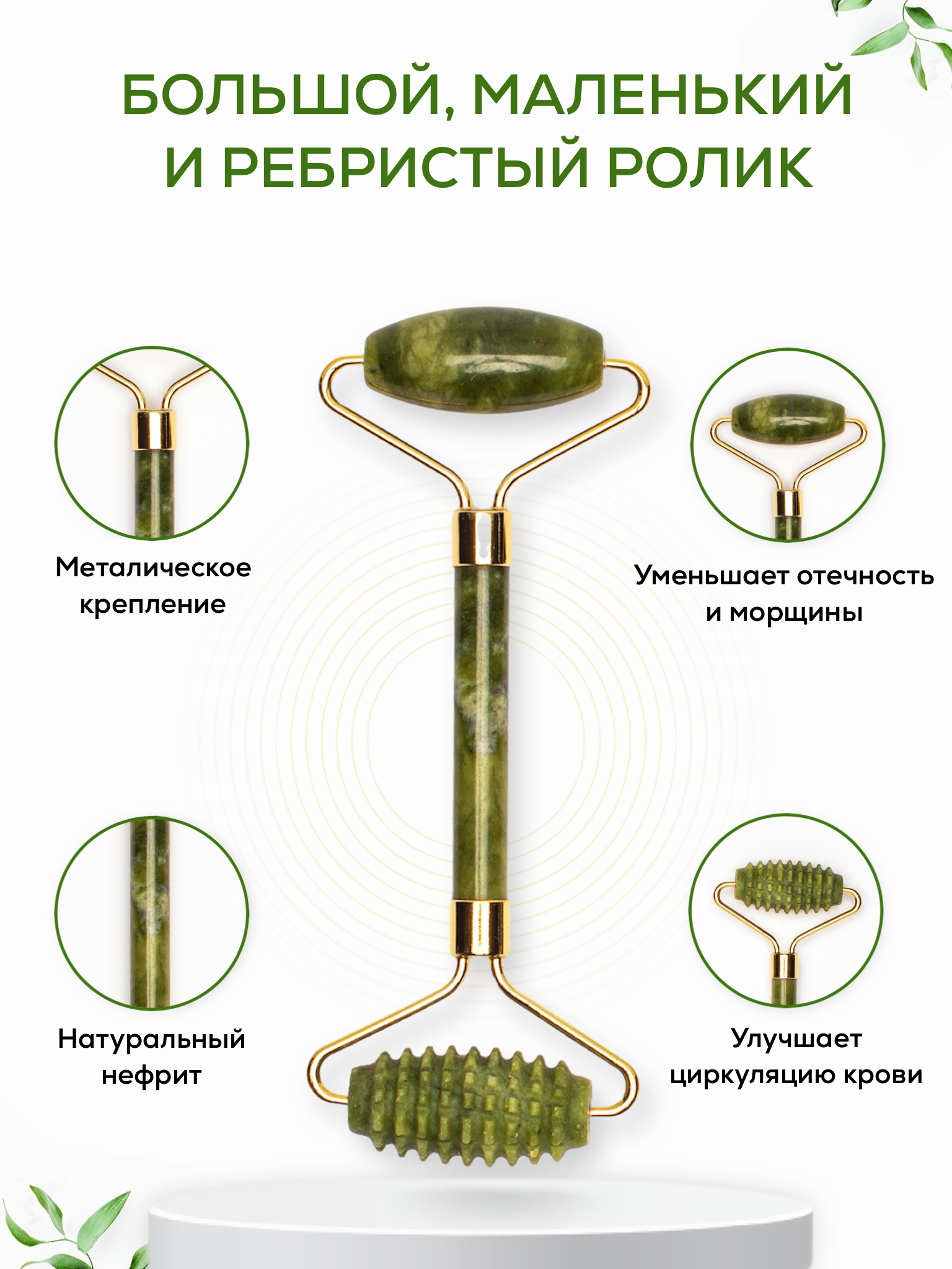Ролик массажный для лица, набор ребристый ролик и скребок гуаша из натурального нефрита интересное: