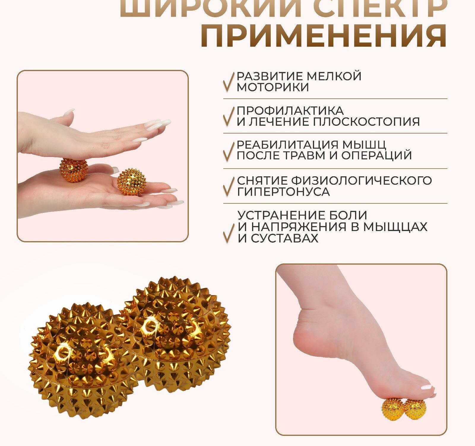 Набор массажёров с магнитом, "Шары", d = 3 см, 2 шт, цвет золотистый